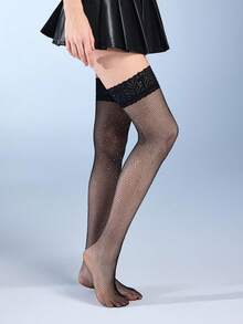 Kawaii 1 Pair Fashionable & Sexy Fuchsia Rhinestone Embellished Minimalist Romantic Fishnet Thigh High Socks, Suitable For Music Festivals, Dates, Galas
