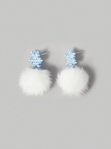 Kawaii 1 Pair Fashionable Sweet Winter Snowflake White Ball Earrings