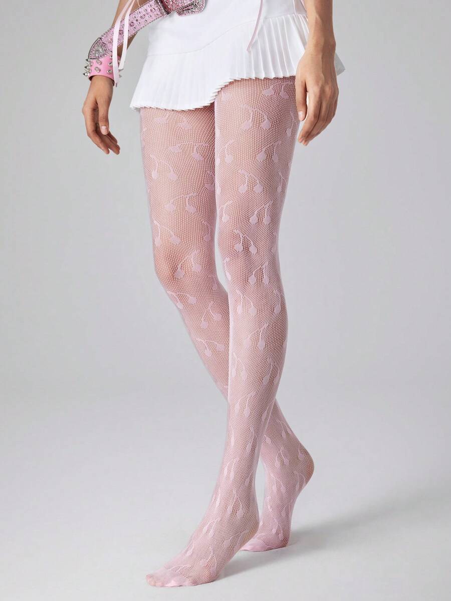 Kawaii 1 Pair Fishnet Stockings With Cherry Blossom Pattern, Vintage Sheer Thin Elastic Tights, Body Hugging Pantyhose