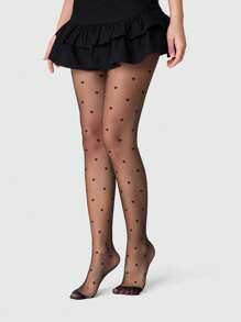 Kawaii 1 Pair Goth Girl Style Black Heart Pattern Fishnet Stockings