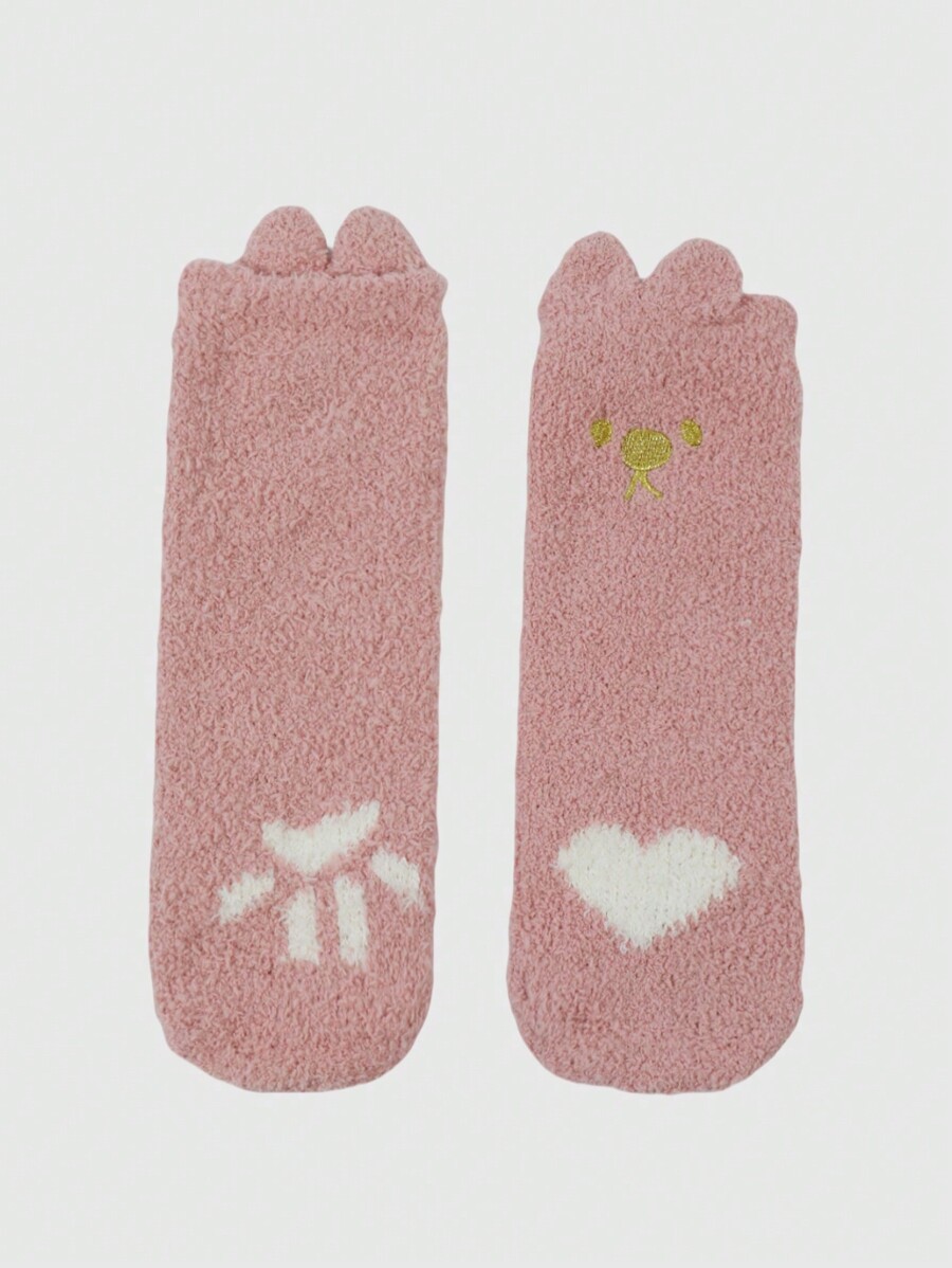 1 Pair Kawaii Pink Heart Cat Paw Plush Socks
