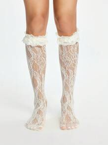 Kawaii 1 Pair Lace Trim Adorable Women Over-The-Knee Socks