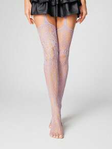 Kawaii 1 Pair Purple Vintage Lace Hollow Out Fishnet Stockings