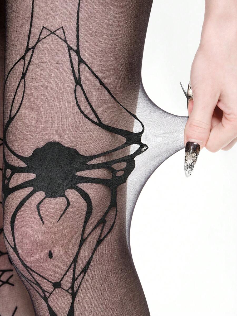 Kawaii 1 Pair Sexy Black Spider Web Patterned Pantyhose, Sheer Elastic Tight Stockings With Geometric Design