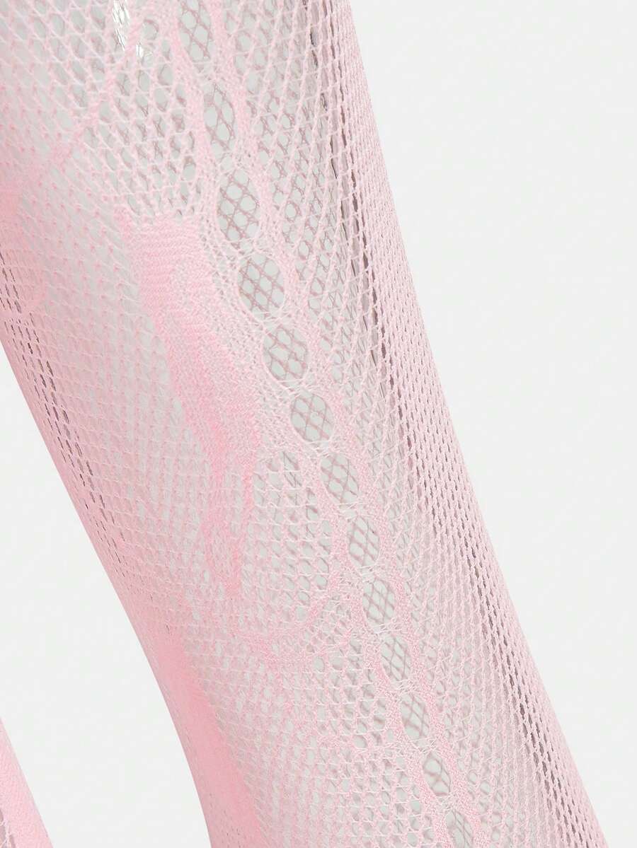 Kawaii 1 Pair Sexy Fishnet Tights With Gradient Rose Cutout Design, Vintage Pink Vertical Line Hollow Pantyhose, Ultra-Thin, Elastic, Sheer Legging Socks