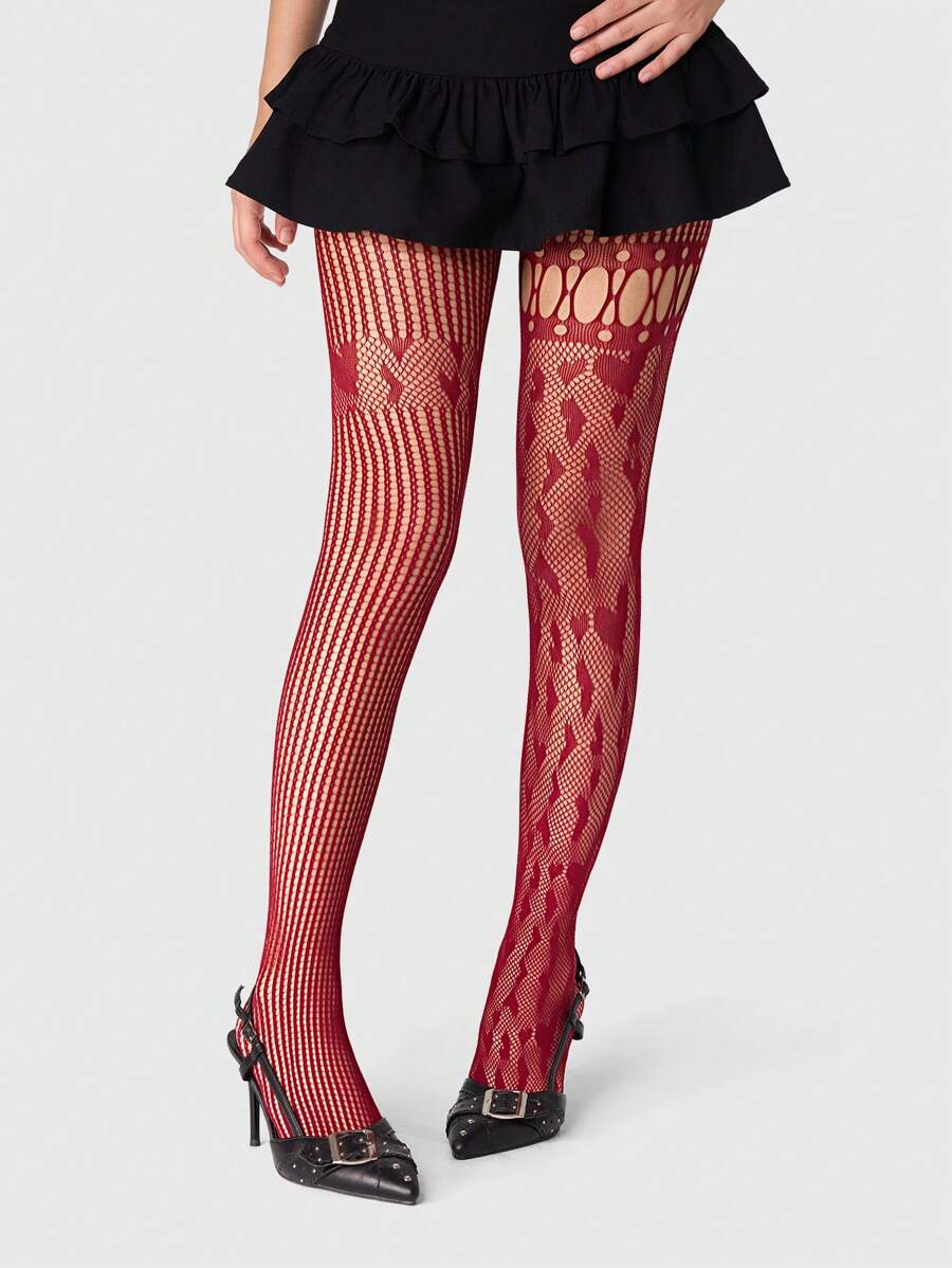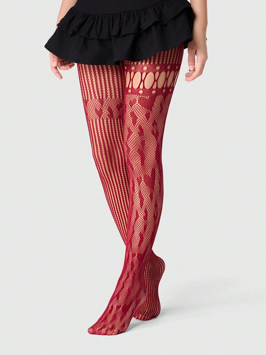 Kawaii 1 Pair Vintage Sexy Fishnet Thigh High Socks With Heart Cutouts, Ultra Thin Elastic Sheer Tights, Sultry Stockings