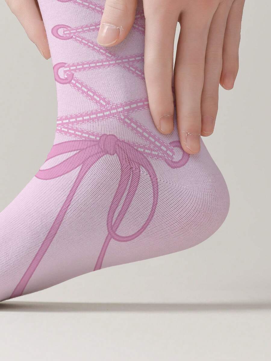 Kawaii 1 Pair Women 360° Print Mid-Calf Socks, 3D Printed All Season Socks With Cute Bowknot Design, Soft & Breathable, Fashion & Casual, Suitable For Daily Wear, Outdoor Activities, Running, Basketball