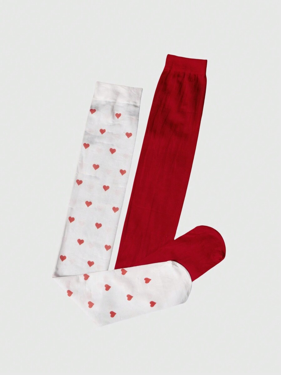 Kawaii 1pair Women Gothic Style Heart & Red Thigh High Socks, All Season
