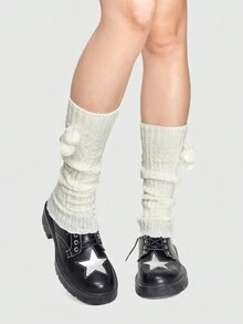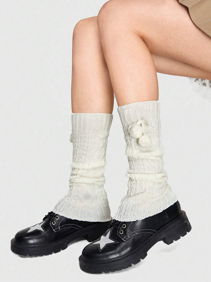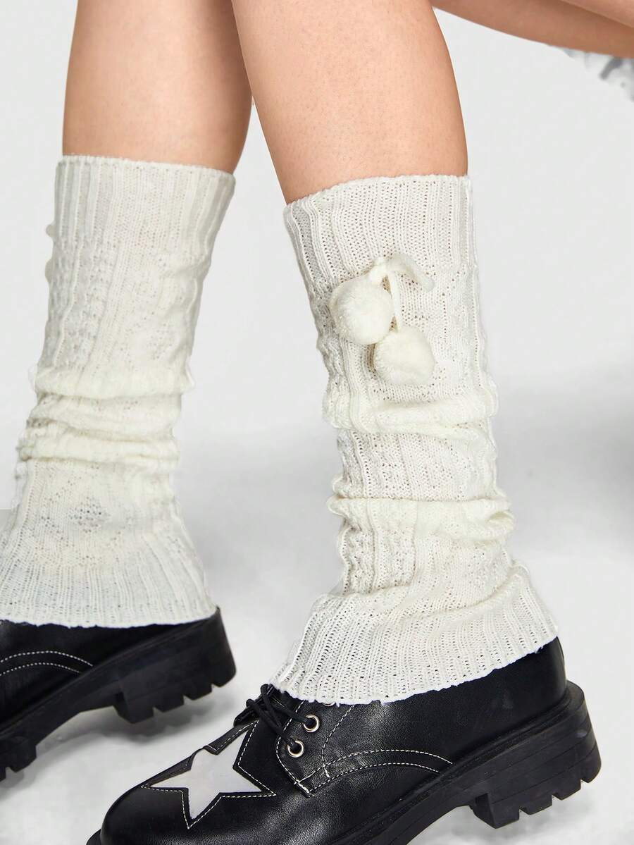 Kawaii 1pair Women Pom Pom & Bow Decor Leg Warmers