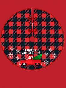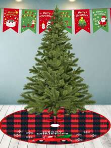 Kawaii 1pc Christmas Tree Skirt, Christmas Decoration Print Coral Fleece Skirt