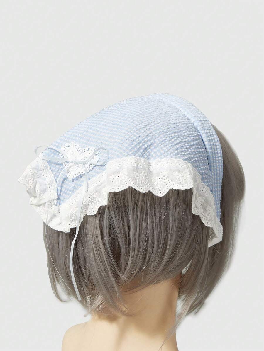 Kawaii 1pc Cute Pastoral Lace Ruffle Heart Bow Headband, Fashion Accessories For Women