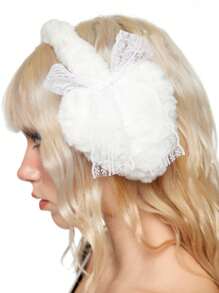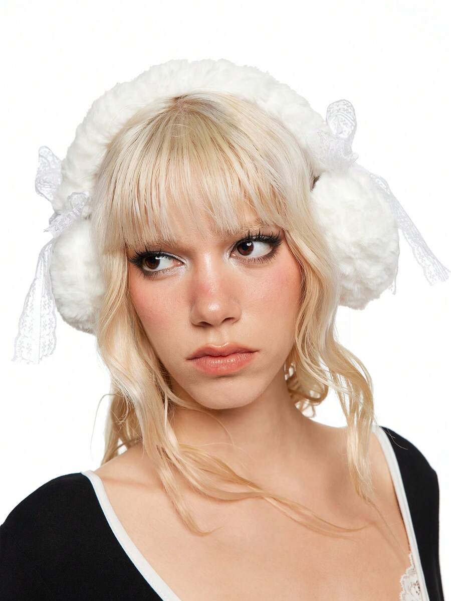 1pc Cute Plush Ear Muffs, Kawaii Lace Bow Decor Ear Warmers, Y2K Ear Muffs, Winter Ear Covers Valentines