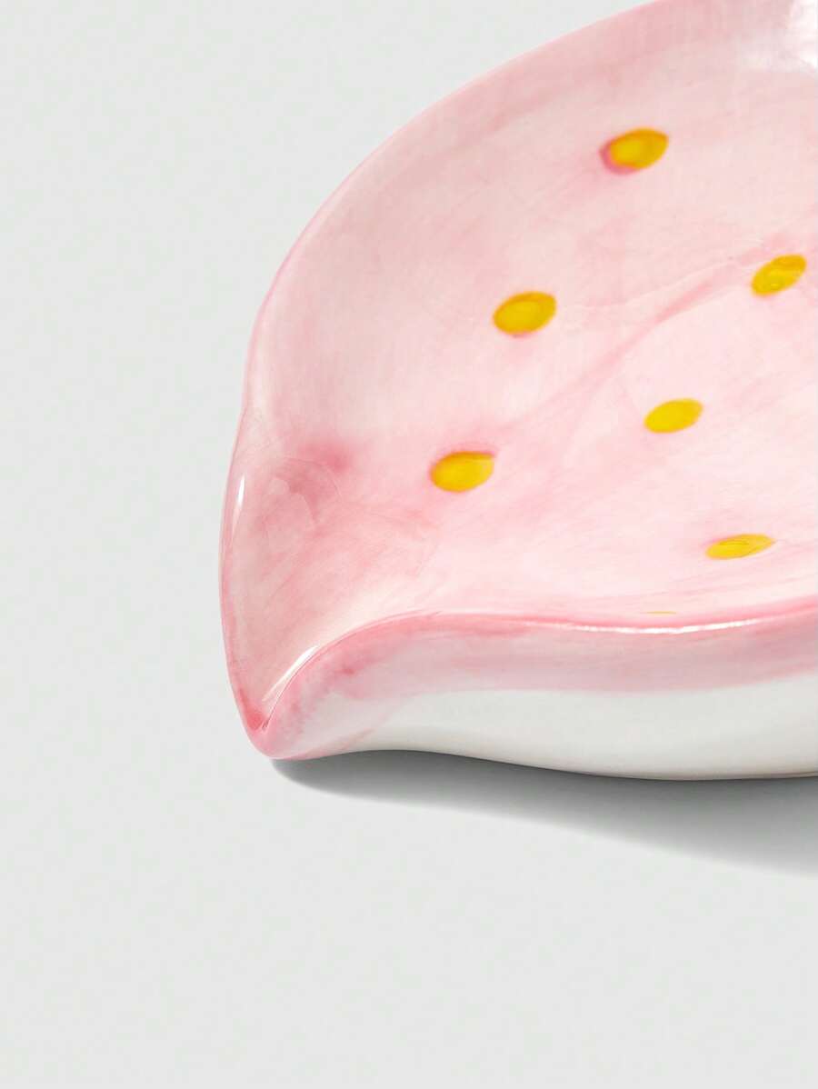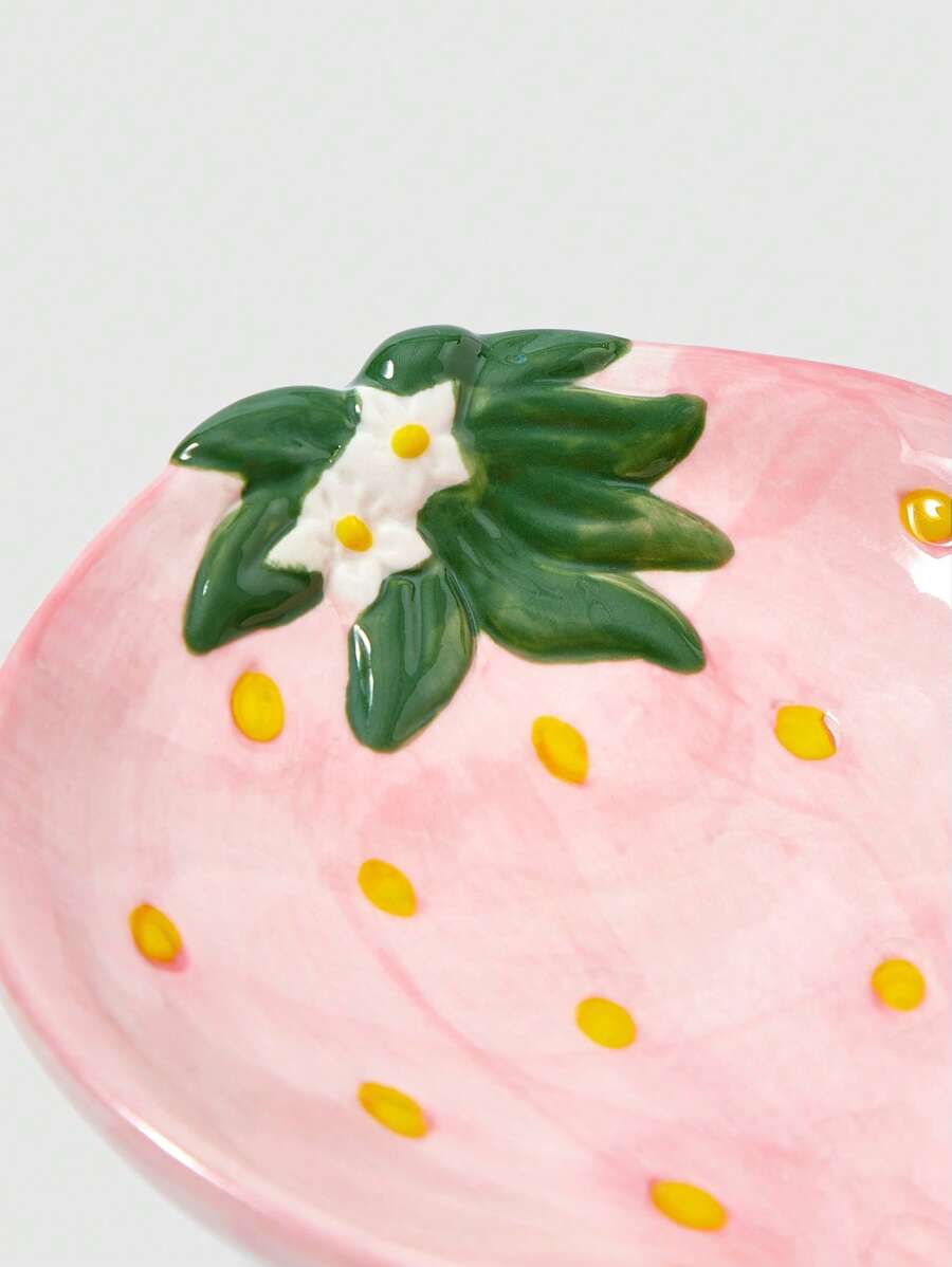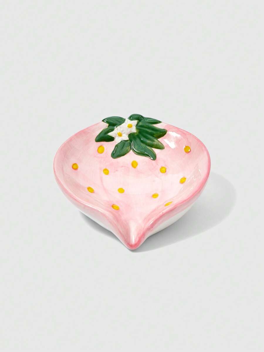 Kawaii 1pc Cute Strawberry Shaped Jewelry Tray, Sweet Style Jewelry Display Organizer, Unique Bathroom Soap Dish (Ceramic Product May Have Minor Black Spots, Which Is Normal In The Manufacturing Process)
