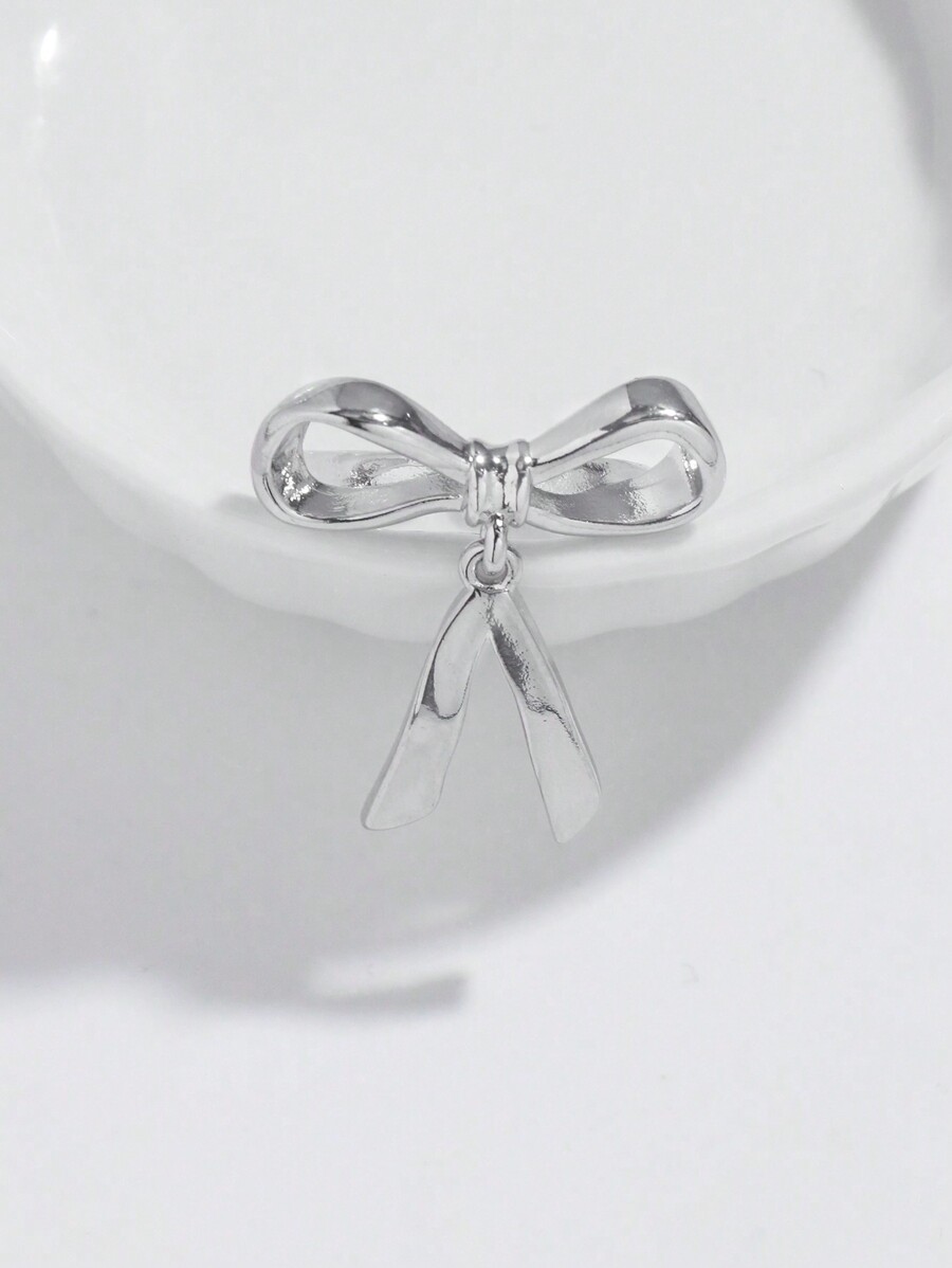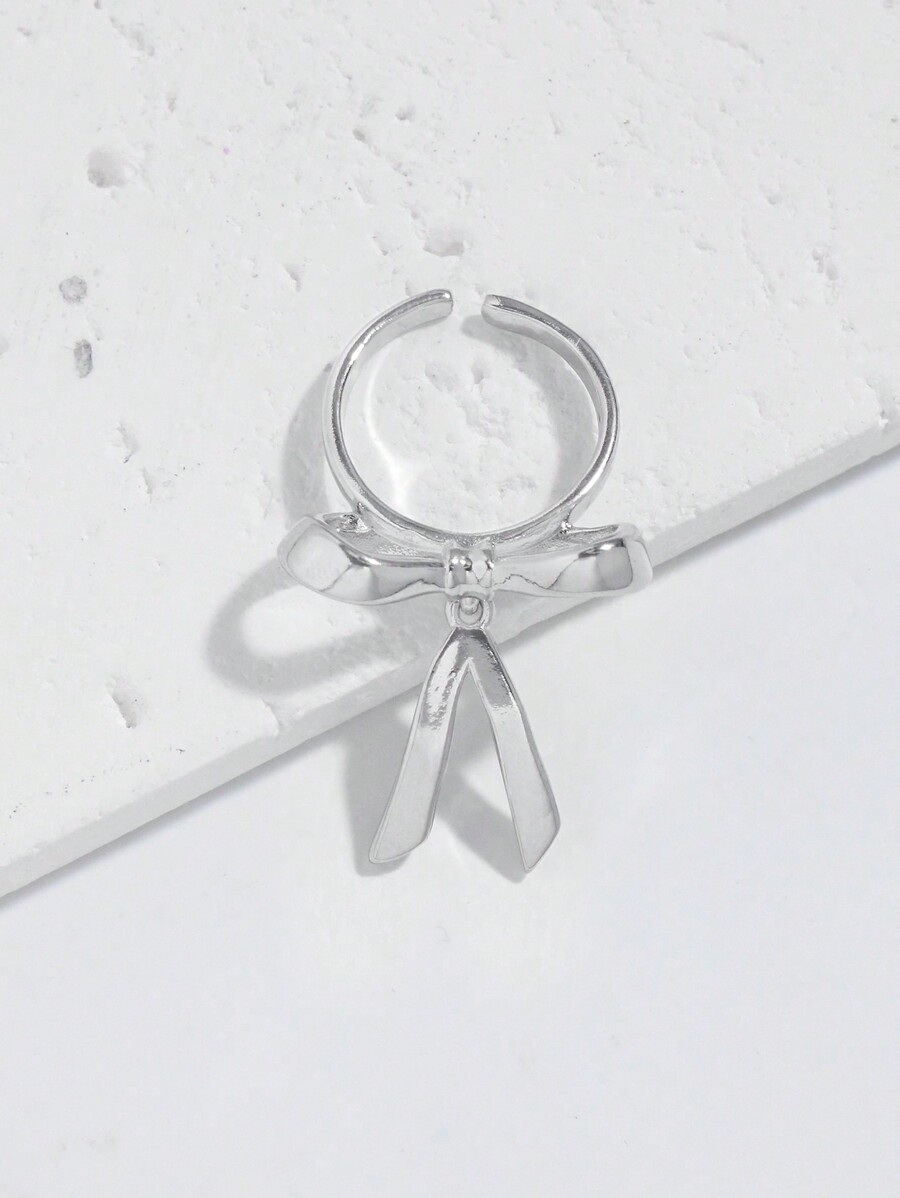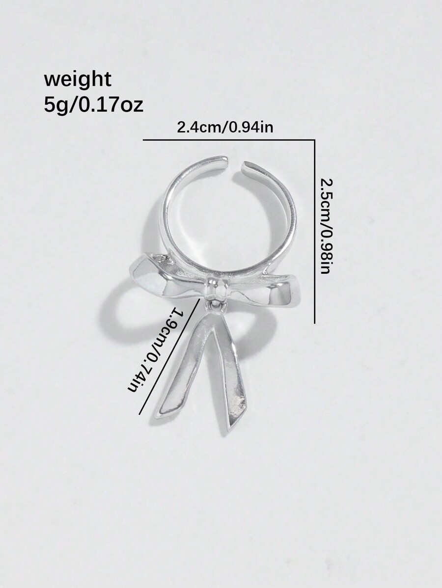 Kawaii 1pc Elegant Copper Material Silver-Colored Geometric Bowknot Shaped Unique Design Adjustable Ring, Perfect Graduation Gift For Women