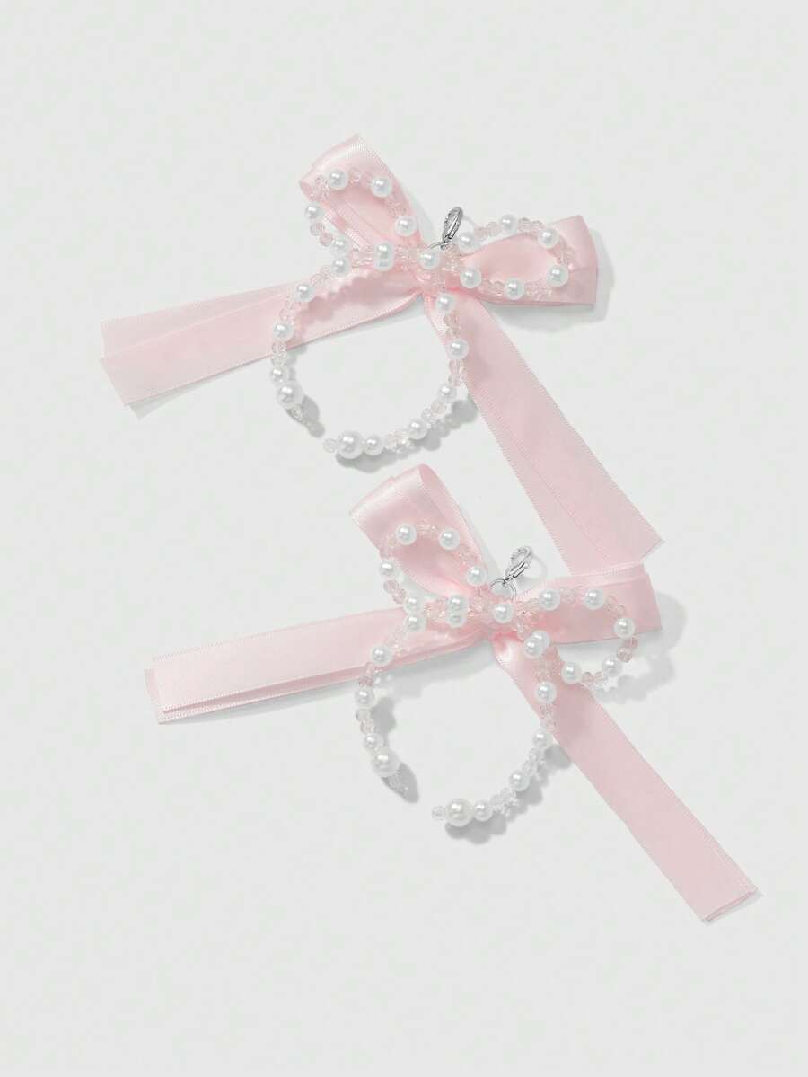 Kawaii 1pc Elegant & Cute Simple Fashion Versatile High-Quality Handmade Beaded White Faux Pearl Faux Crystal Pink Ribbon Multi-Layer Bow DIY Shoe Clip Shoe Decoration Combination Set, Suitable For Women And Girls Daily Wear, Festival Gift