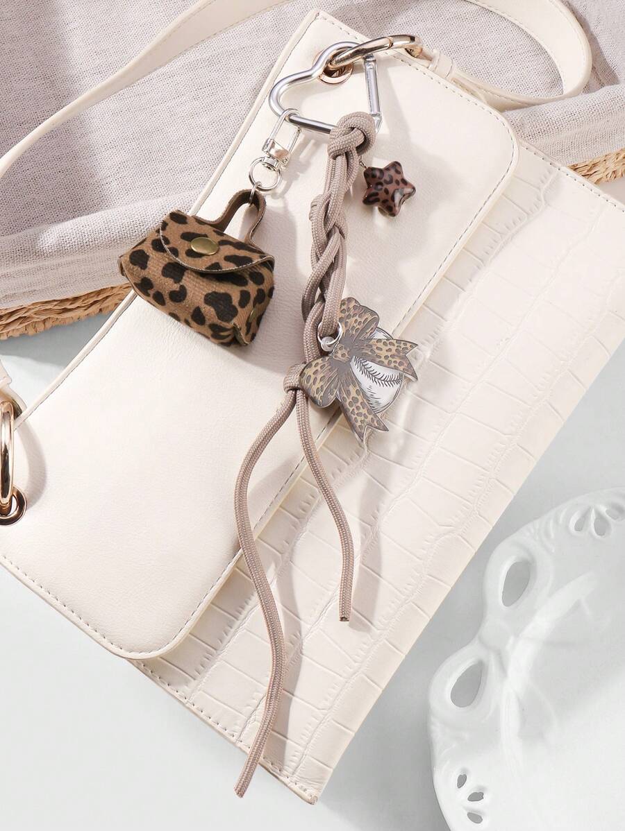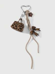 Kawaii 1pc Fashionable Chic Leopard Print Star Mini Coin Purse, Acrylic Bowknot Carabiner Keychain, Suitable For Women, Daily Wear Or Gift