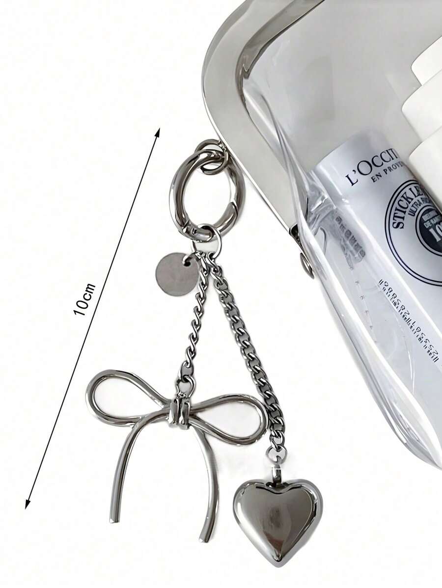 Kawaii 1pc Fashionable Metal Heart Shaped Keyring, Unique Design Bag/Car Accessory