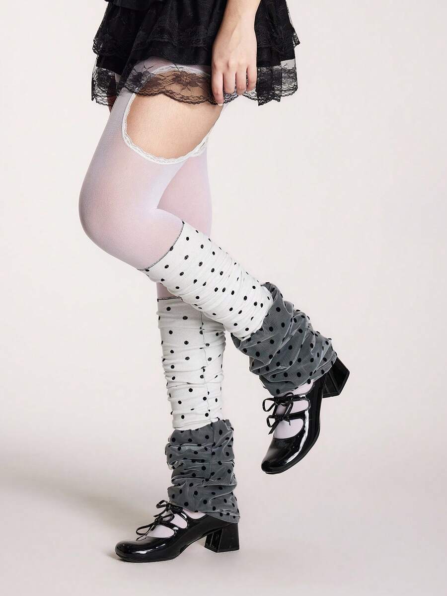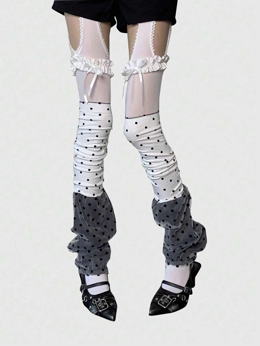 Kawaii 1pc Fashionable Polka Dot Sheer White Stockings, Women's Summer Thin Pantyhose/Tights/Leggings