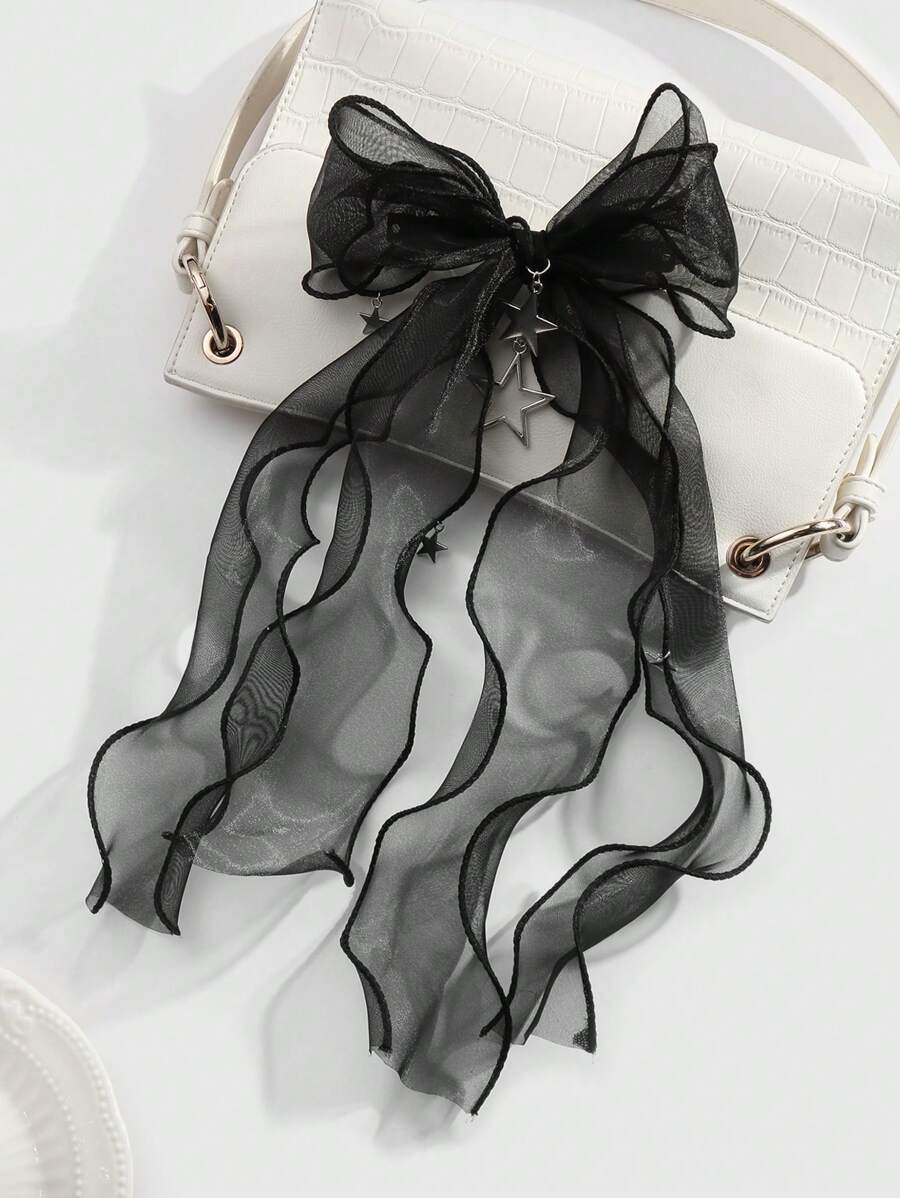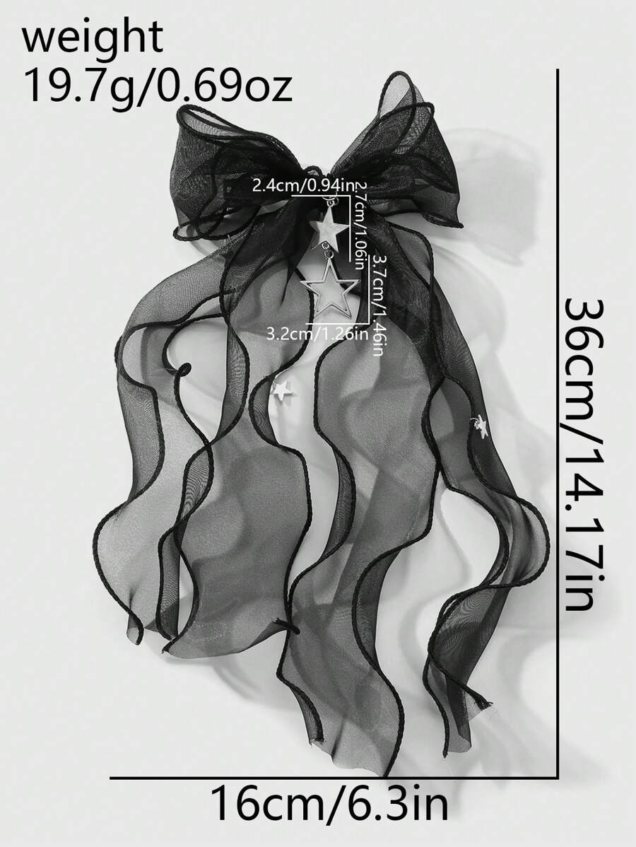 Kawaii 1pc Gothic Elegant Fashion Double-Layer Mesh Bowknot Hollow Star Decor Hair Claw Clip, Suitable For Women & Girl, Daily Wear & Festival Gift