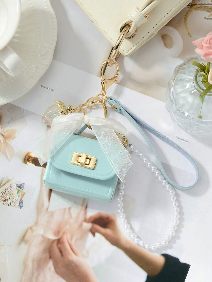 Kawaii 1pc Ins-Style Fashion Handmade Pearl Resin Strawberry Pendant Decorated With Netting Bow Leather Button, Suitable For Women/Girls For Daily Wear Or Holiday Gifts Decoration, Keychain, Bag Accessory