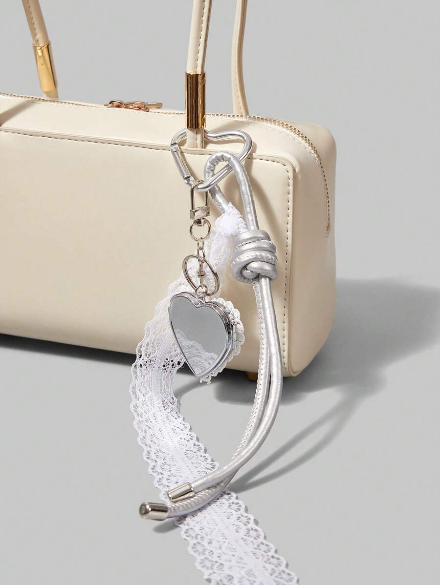 Kawaii 1pc Korean Style Fashion Sweet Lace Bow Heart Shaped Decorative Keychain For Bag And Accessory