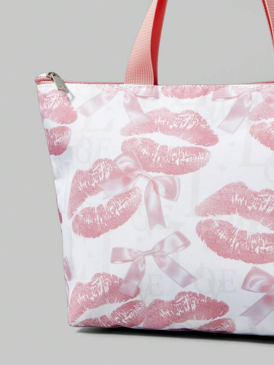 Kawaii 1pc Lip Print Bow Insulated Lunch Bag, Pink & White, Suitable For Commuting, Picnicking, Valentine's Day Gathering