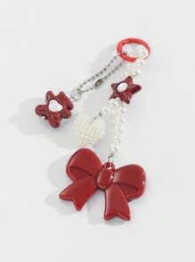 Kawaii 1pc Lovely Wine Red Bow, Small Bear Pearl Heart Resin Keychain Bag Pendant, Suitable As Back To School, Birthday, Holiday Gift