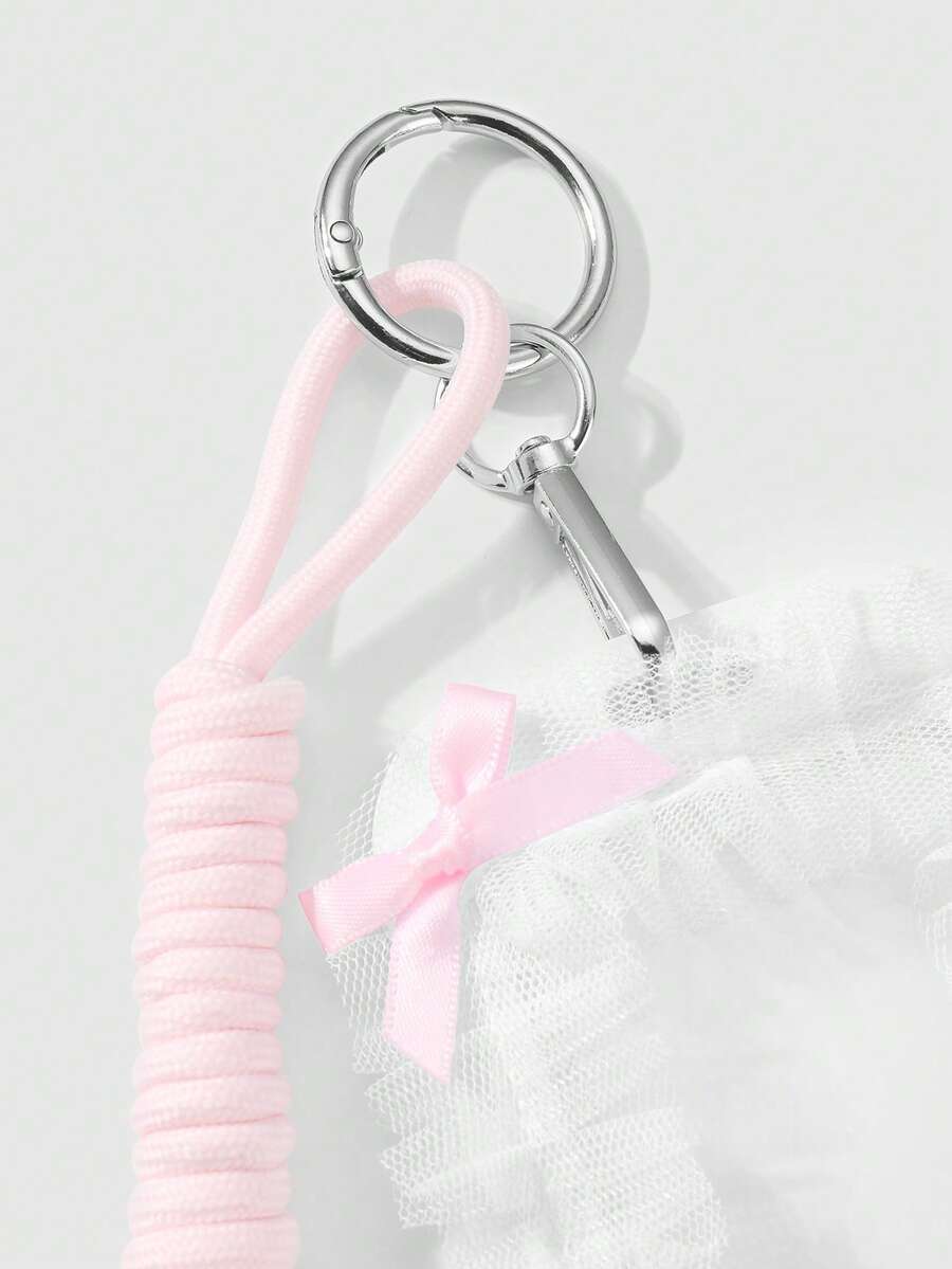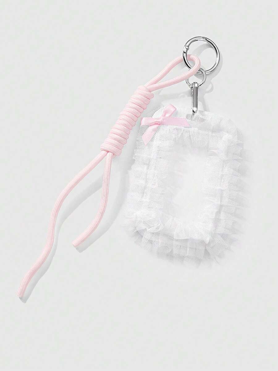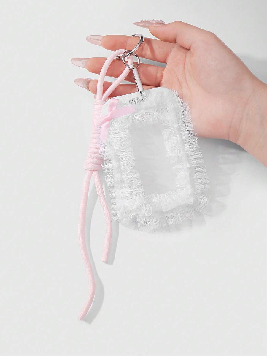 Kawaii 1pc Minimalist Elegant Sweet High-Quality White Mesh Bow Transparent Card Holder With Adjustable Lanyard, Suitable For Office Workers, Students, Ladies, Daily Use, Holiday Gift