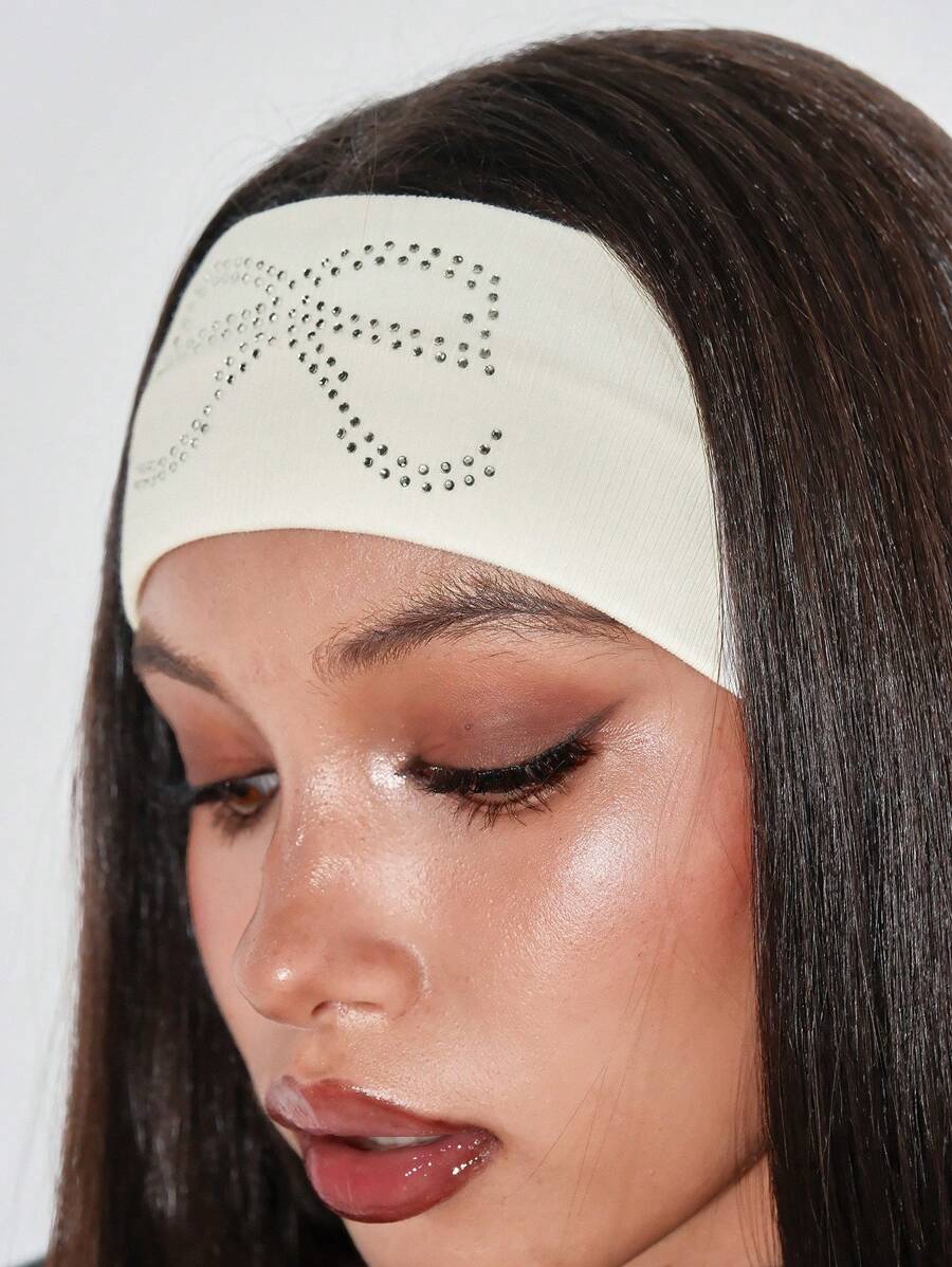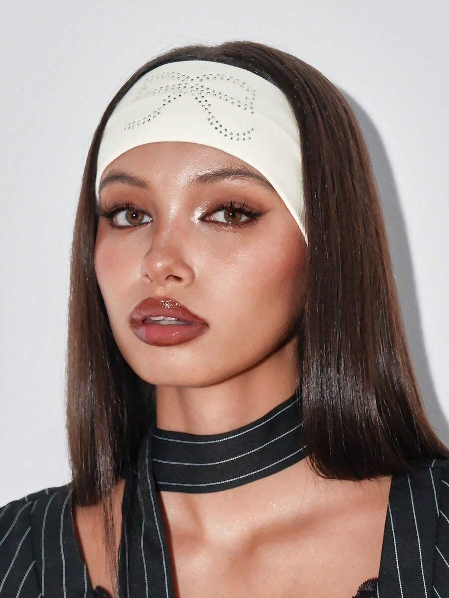 Kawaii 1pc Rhinestone Bow Knitted Headband, Y2K Sporty Yoga Sweat Absorbent Hairband, Simple Solid Color Elastic Everyday Casual Hair Accessory