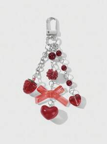 Kawaii 1pc Y2K Chic Hollow Chain Red Faux Crystal Soft Clay Rhinestone Ball Resin Strawberry Bow Heart DIY Keychain Bag Charm, Suitable For Women/Girls Daily Wear, Holiday Gift