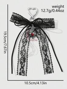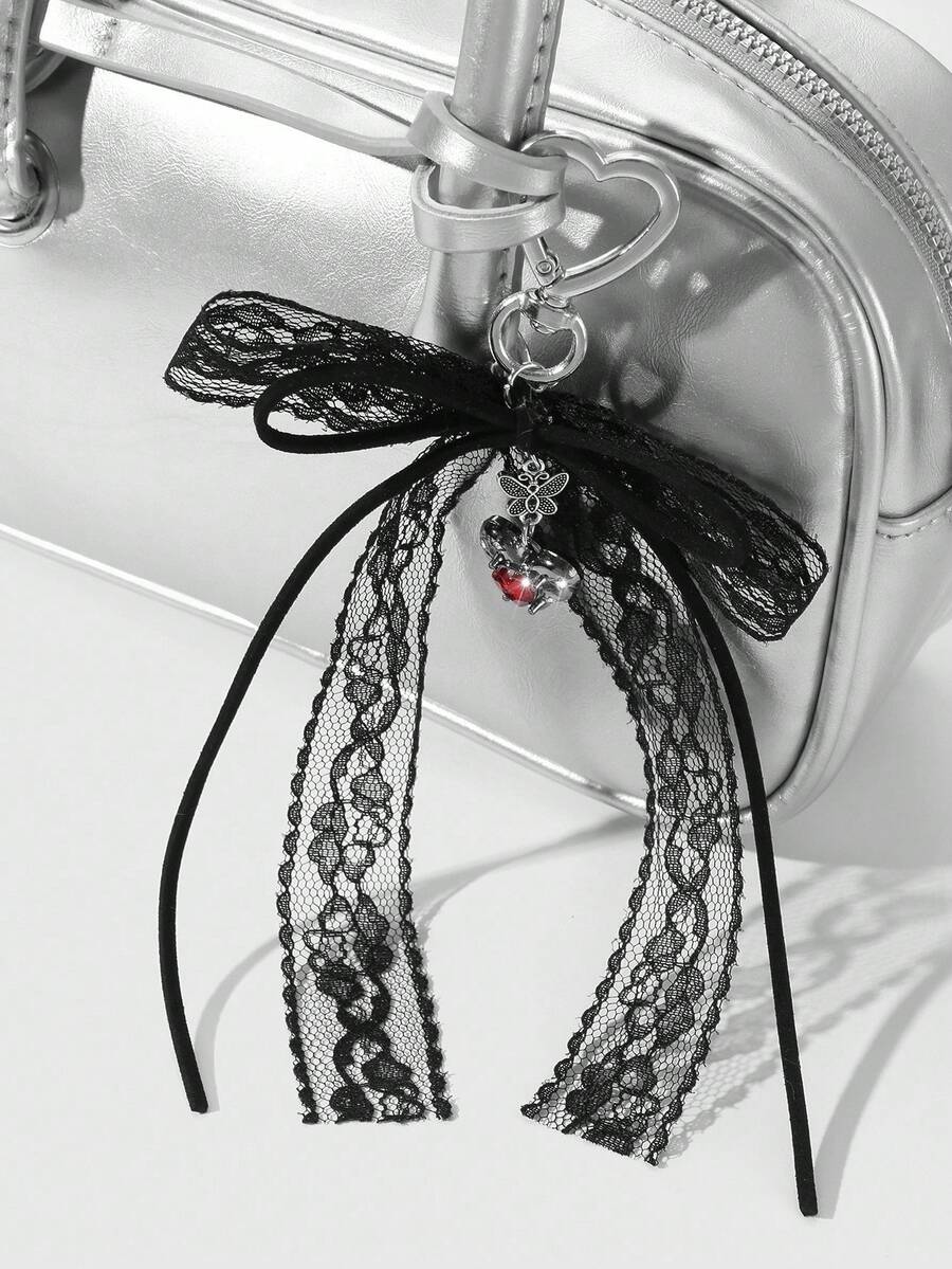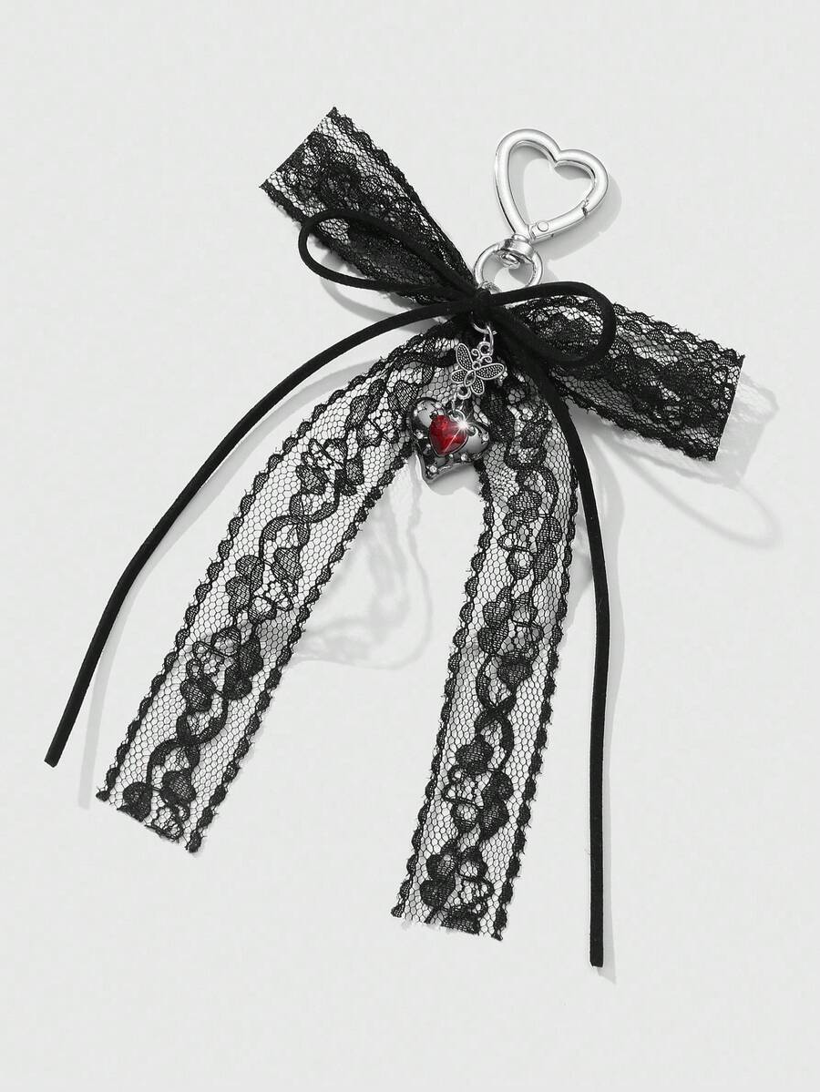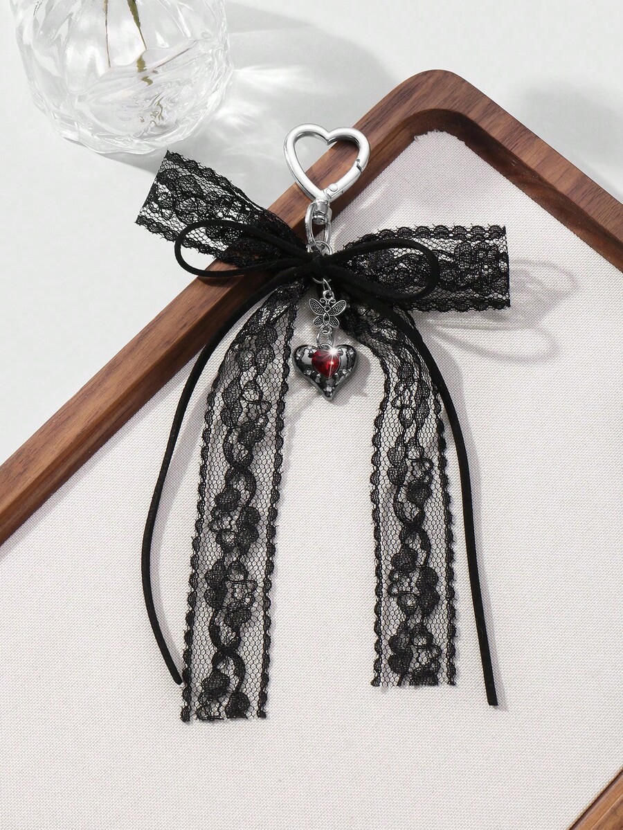 Kawaii 1pc Y2K Chic Vintage Goth Style Black Velvet Ribbon, Lace Trim, Bowknot, Faux Crystal Heart Shaped DIY Keychain, Purse Charm - Suitable For Women,Girls, Daily Wear, Holiday Gift