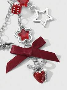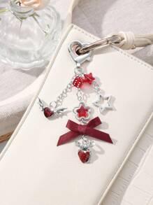 Kawaii 1pc Y2K Fashionable Delicate Silver Hollow Resin Star Wing Heart Ribbon Bow Crystal Strawberry DIY Heart Keychain Bag Charm, Suitable For Women/Girls Daily Wear, Holiday Gift