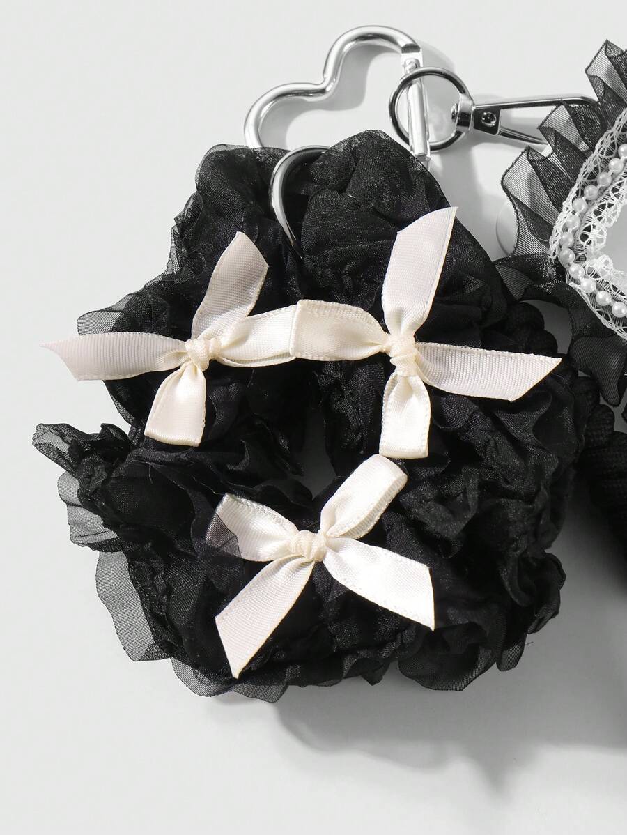 Kawaii 1pc Y2K Stylish Delicate Dark Gothic Style Black Mesh Bow Hair Scrunchie, Faux Pearl Scallop Bow Drawstring Lanyard & ID Badge Reel, Keychain Bag Charm, Suitable For Office Worker, Students, Daily Wear, Holiday Gift