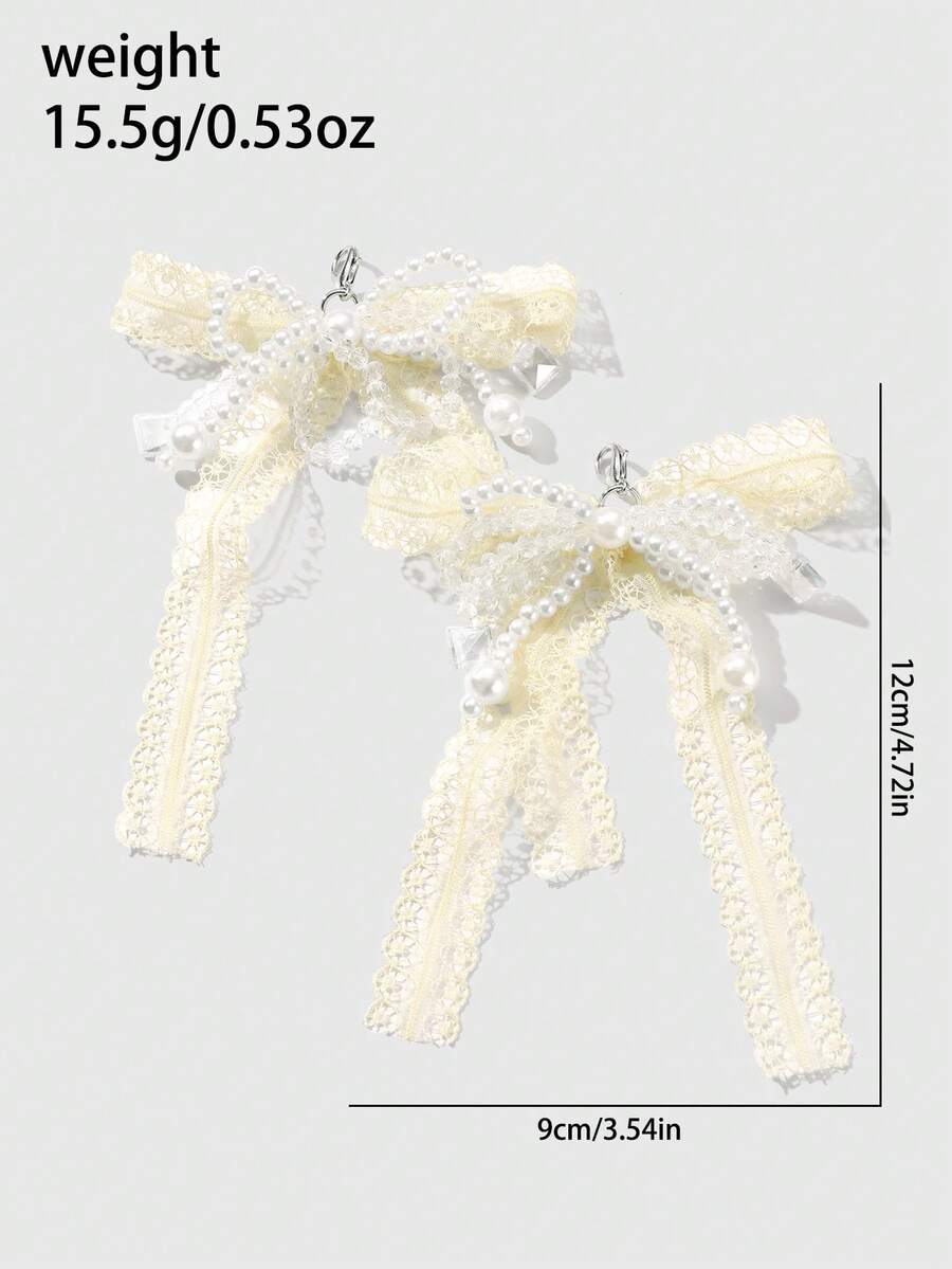 Kawaii 2 Sets Korean Style Cute & Delicate Handmade Beaded White Faux Pearl Faux Crystal Yellow Mesh Bow Shoe/Boot Decorations, Versatile Daily Wear Or Gift For Girls/Women