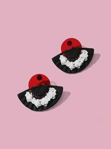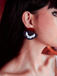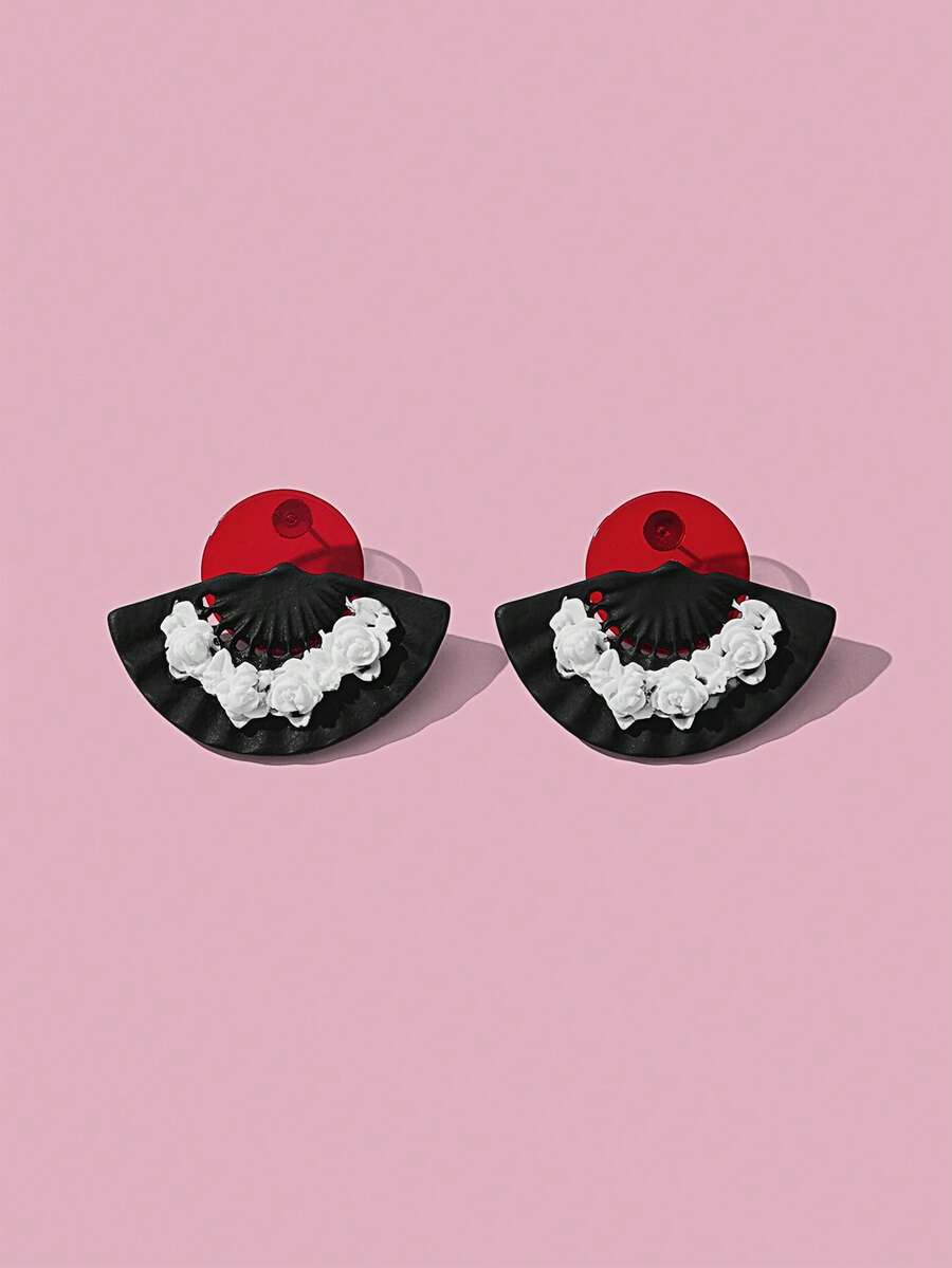 Kawaii 2pairs/set Fashion Floral Decor Fan Design Stud Earrings For Women For Gift