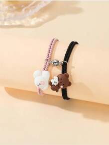 Kawaii 2pcs Couples Bracelets, Cartoon Magnetic Matching Wristbands, Valentine's Day Gift,Mom,Mother,Mother's Day,Gift