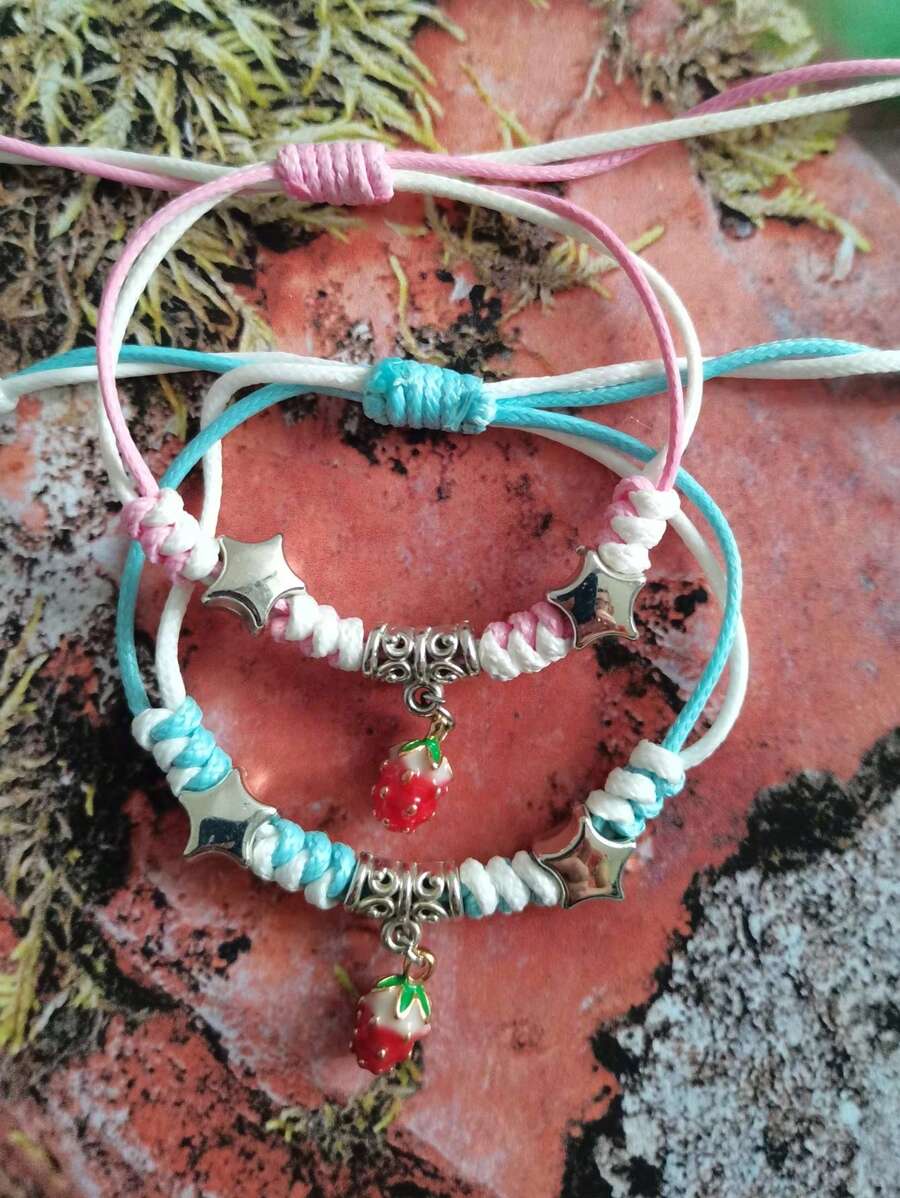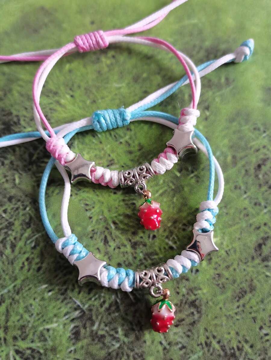Kawaii 2pcs Cute Star & Strawberry Charm Bracelet For Couple For Daily Decoration