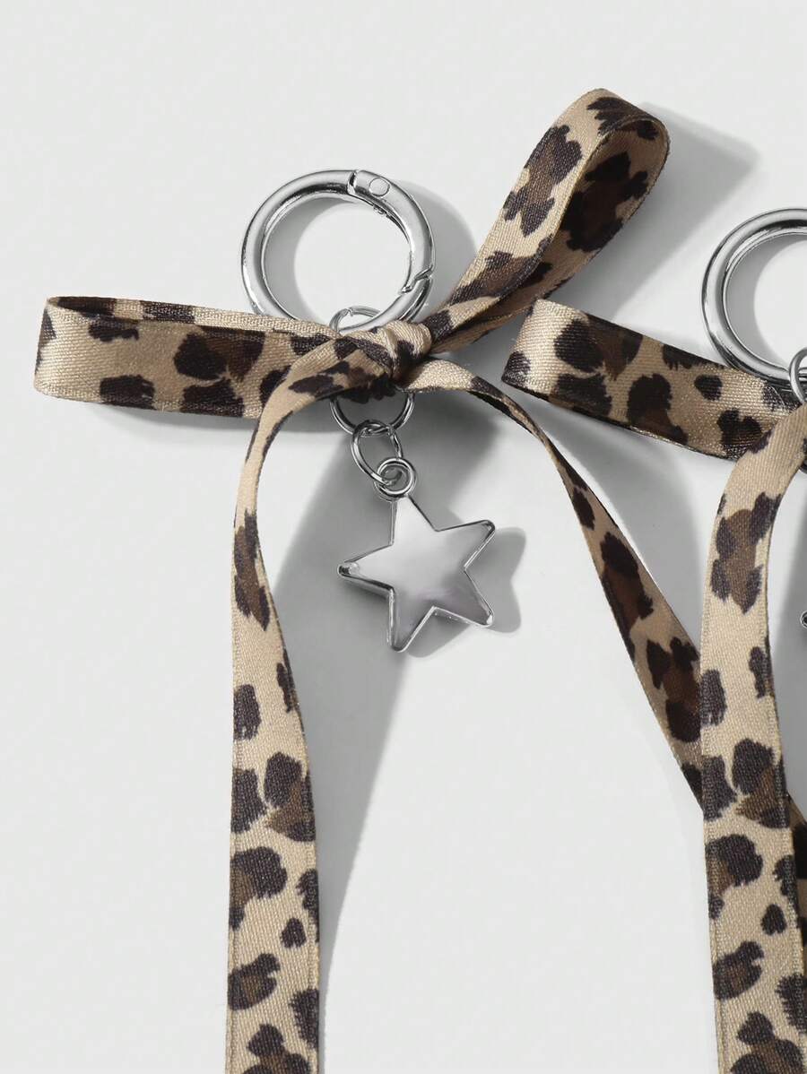 Kawaii 2pcs Fashionable Korean Style Leopard Bow, Star Pendant, Shoe Buckle Decoration Set, Suitable For Women/Girls Everyday Wear, Gift For Holidays