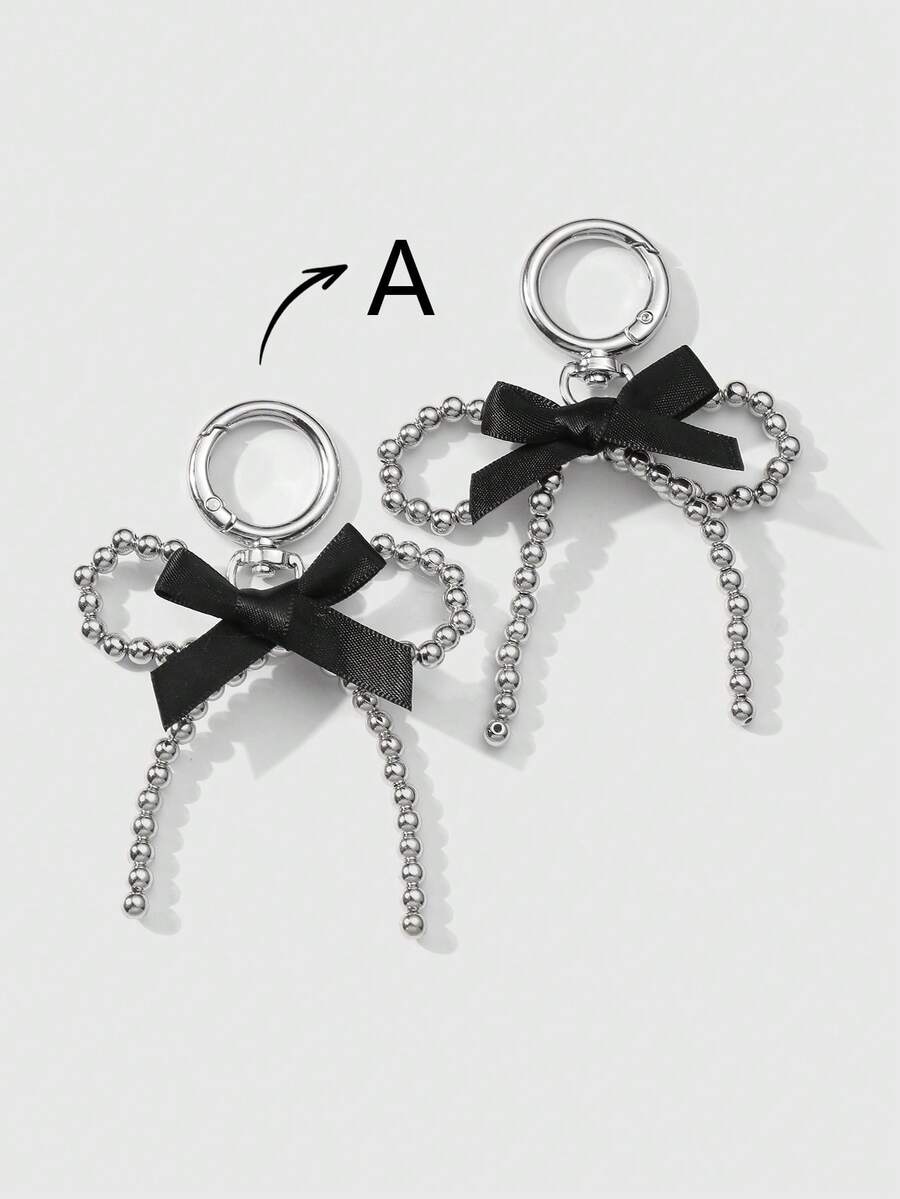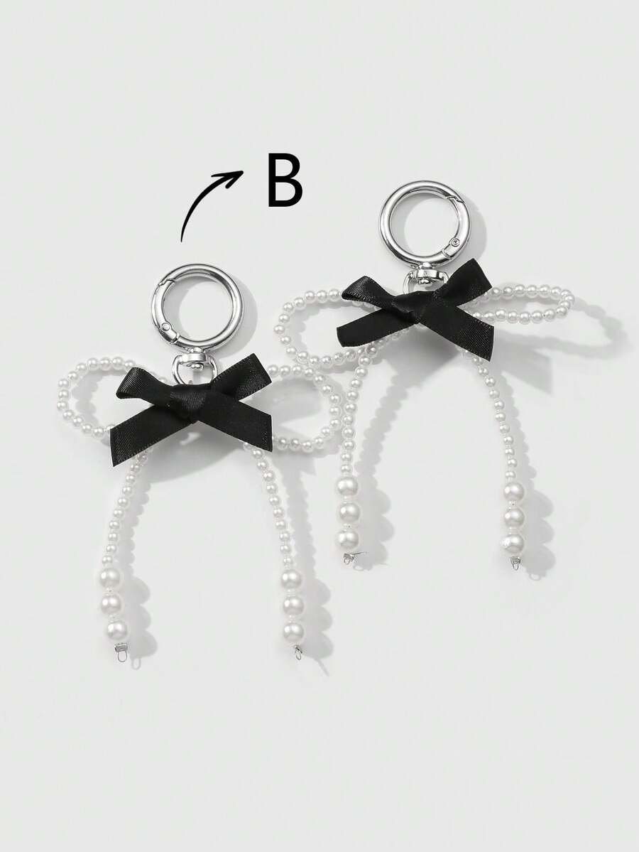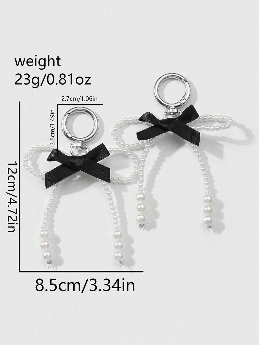 Kawaii 2pcs Gothic Style High-End Handmade Beaded White Faux Pearl, Silver CCB, Black Ribbon Bow Shoe Boot Decoration, Suitable For Women, Gift For Friends, Daily & Festive Wear