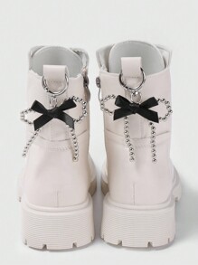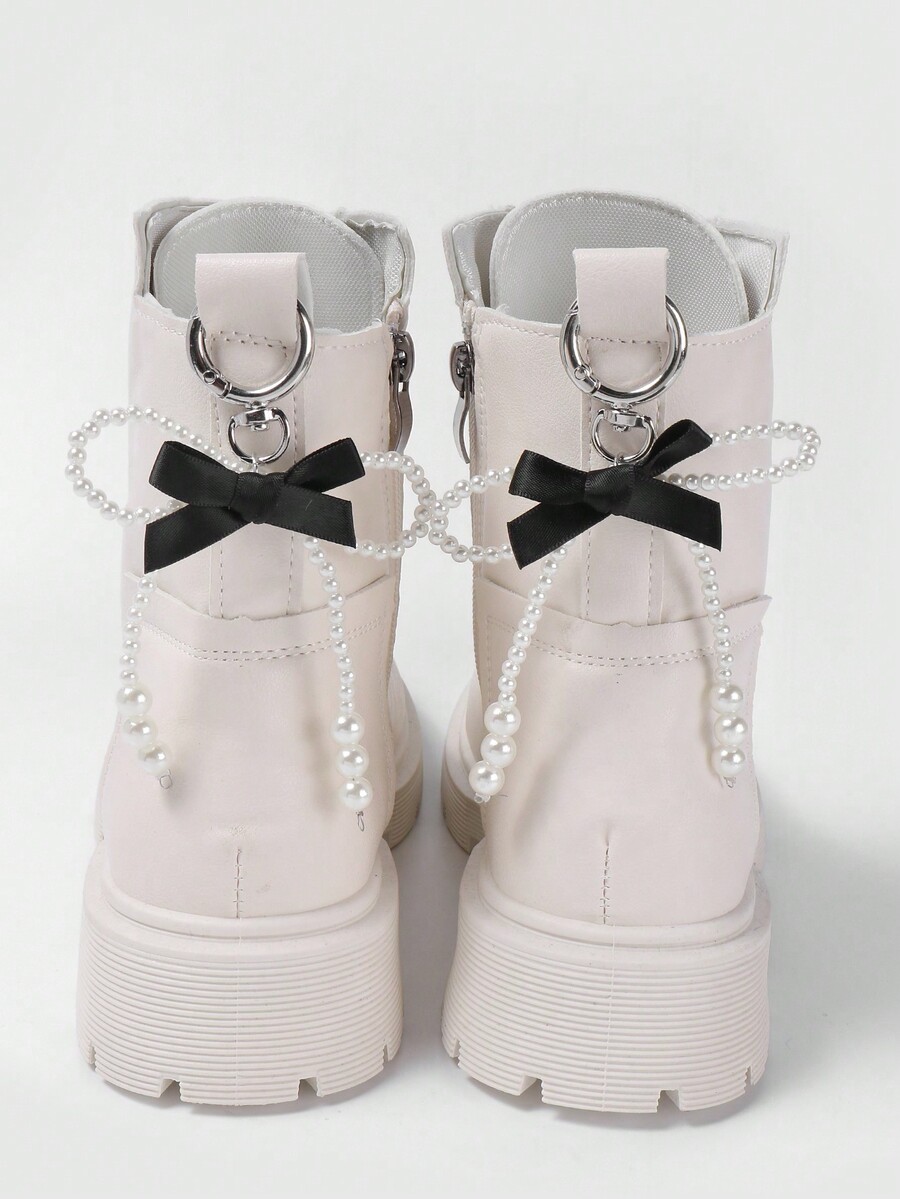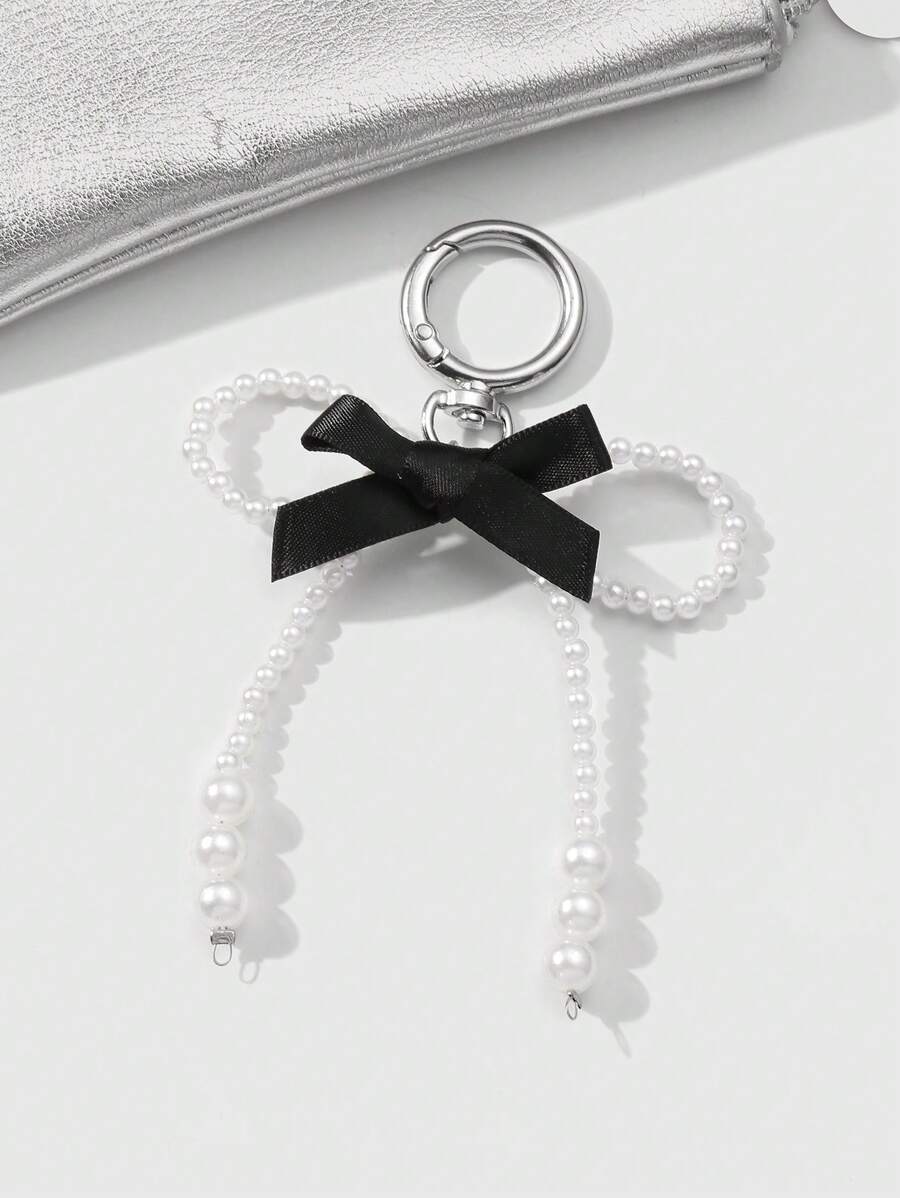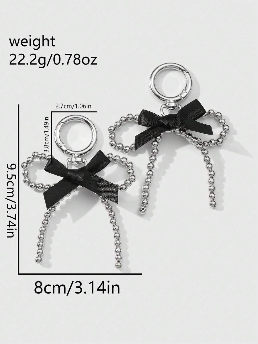 Kawaii 2pcs Gothic Style High-End Handmade Beaded White Faux Pearl, Silver CCB, Black Ribbon Bow Shoe Boot Decoration, Suitable For Women, Gift For Friends, Daily & Festive Wear