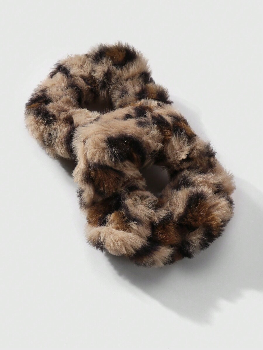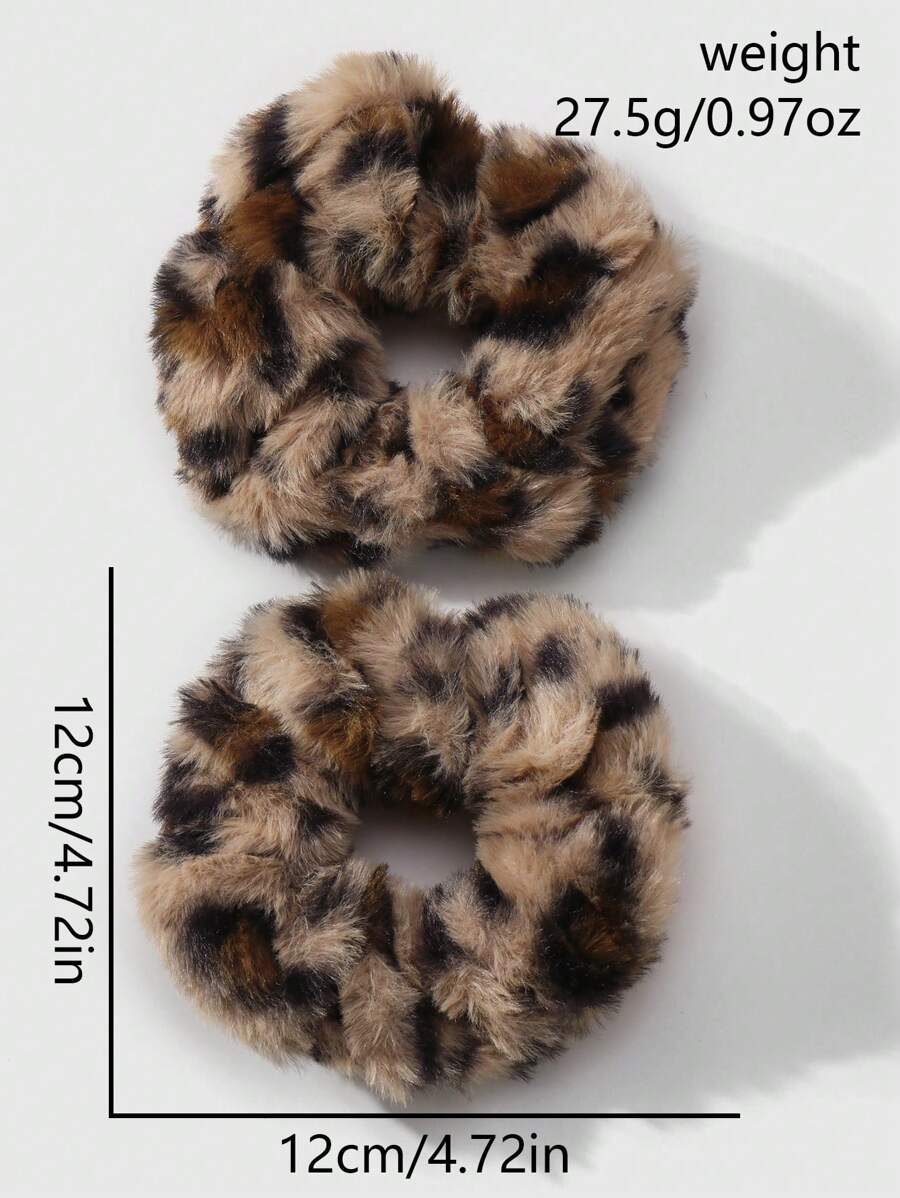Kawaii 2pcs/Set Chic Vintage Leopard Print Fluffy Scrunchies, Korean Style & Sophisticated, Suitable For Women Daily Wear, Holiday Gift Hair Ties Ponytail Holders Hair Elastics Hair Rope
