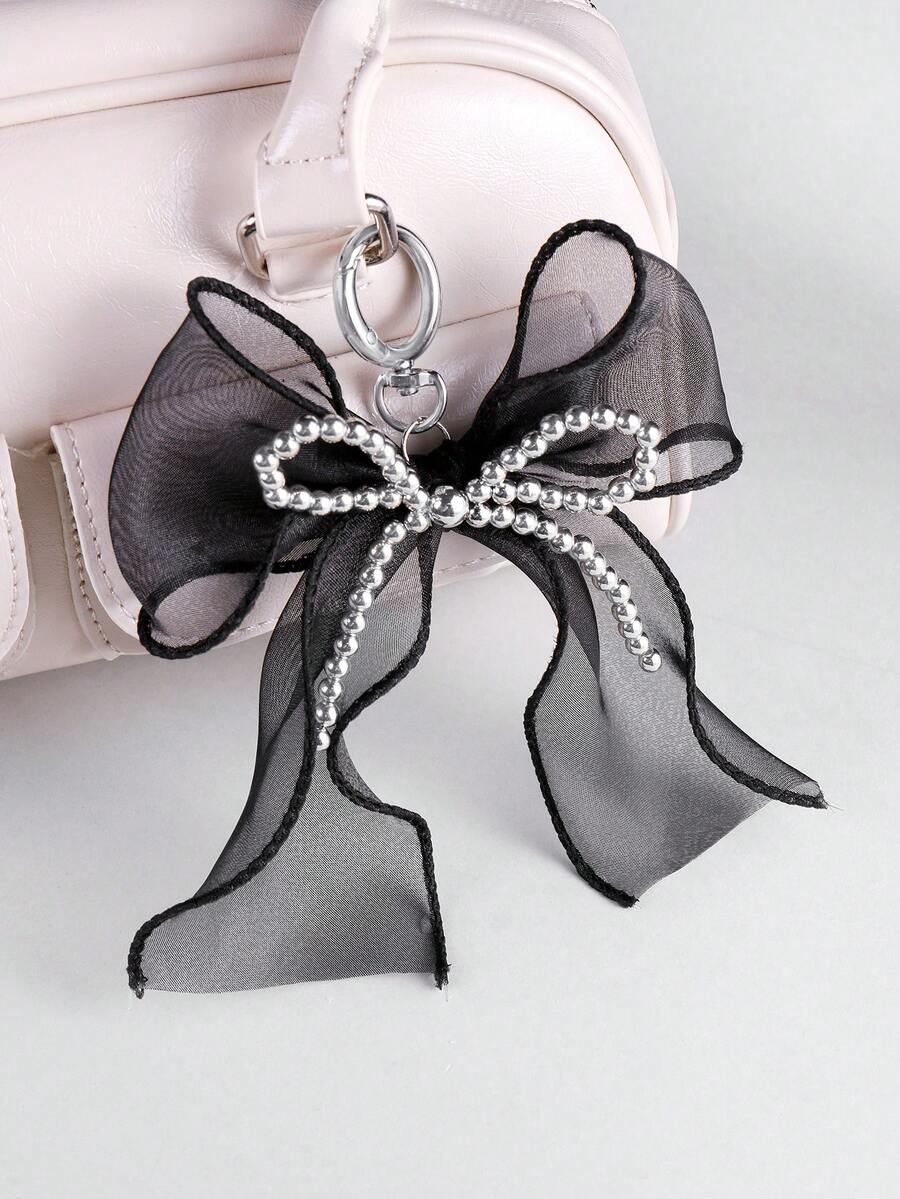 Kawaii 2pcs/Set Elegant Lace Net + Ribbon Pearl Butterfly Decor Key Chain Pendant, Gothic Accessories For Friends Women Gift