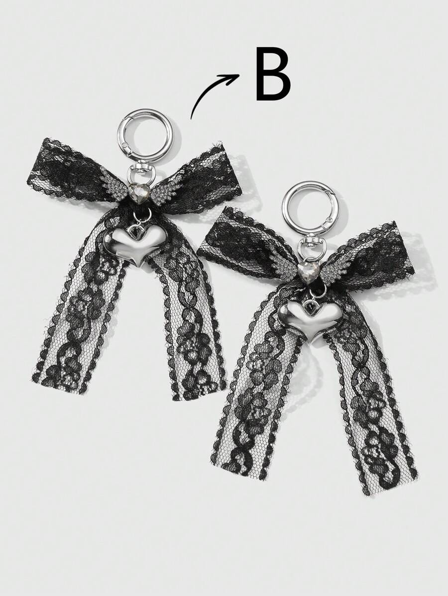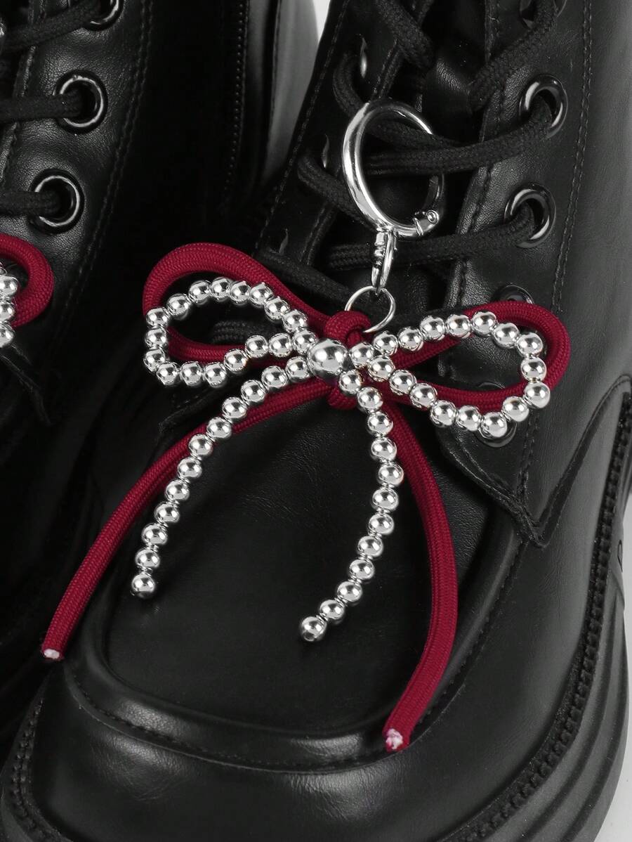 Kawaii 2pcs/Set Goth Chic High-End Handmade Beaded Silver CCB, Red Rope, Black Lace Bow, Rhinestone Heart Shoe Boot Decorations, Suitable For Women And Girls Daily Wear, Holiday Gifts