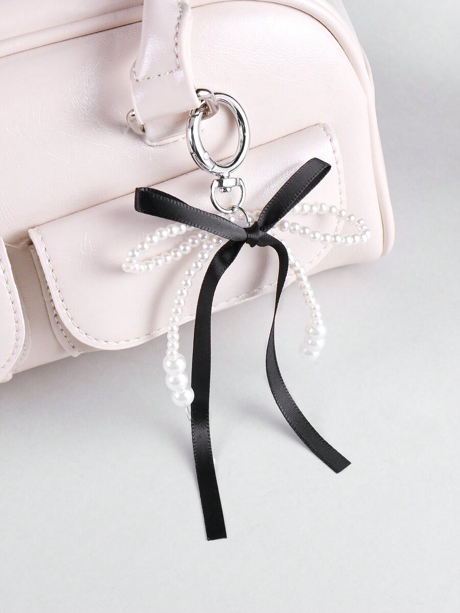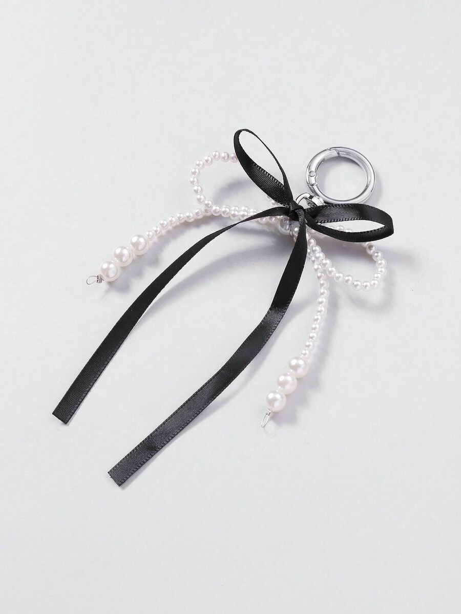 Kawaii 2pcs/Set Gothic Style Black Lace Net + White Faux Pearl Bow Decor Keychain And Bag Charm Accessory Set, Fashionable Combo Fit For Sisters, Girlfriends And Friends, Ideal Gift Valentines