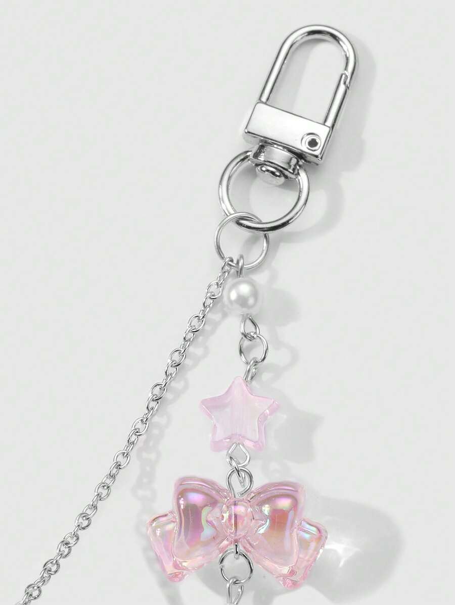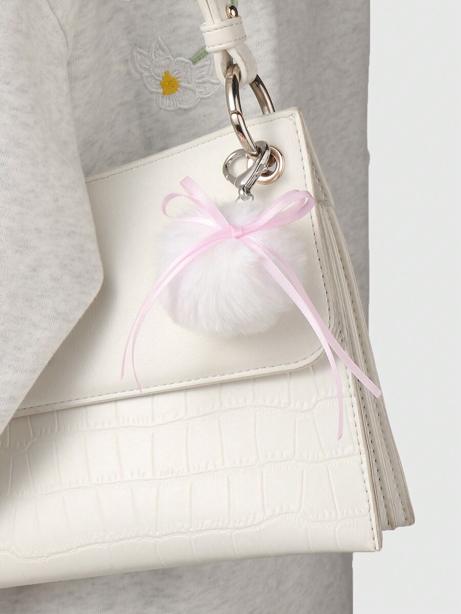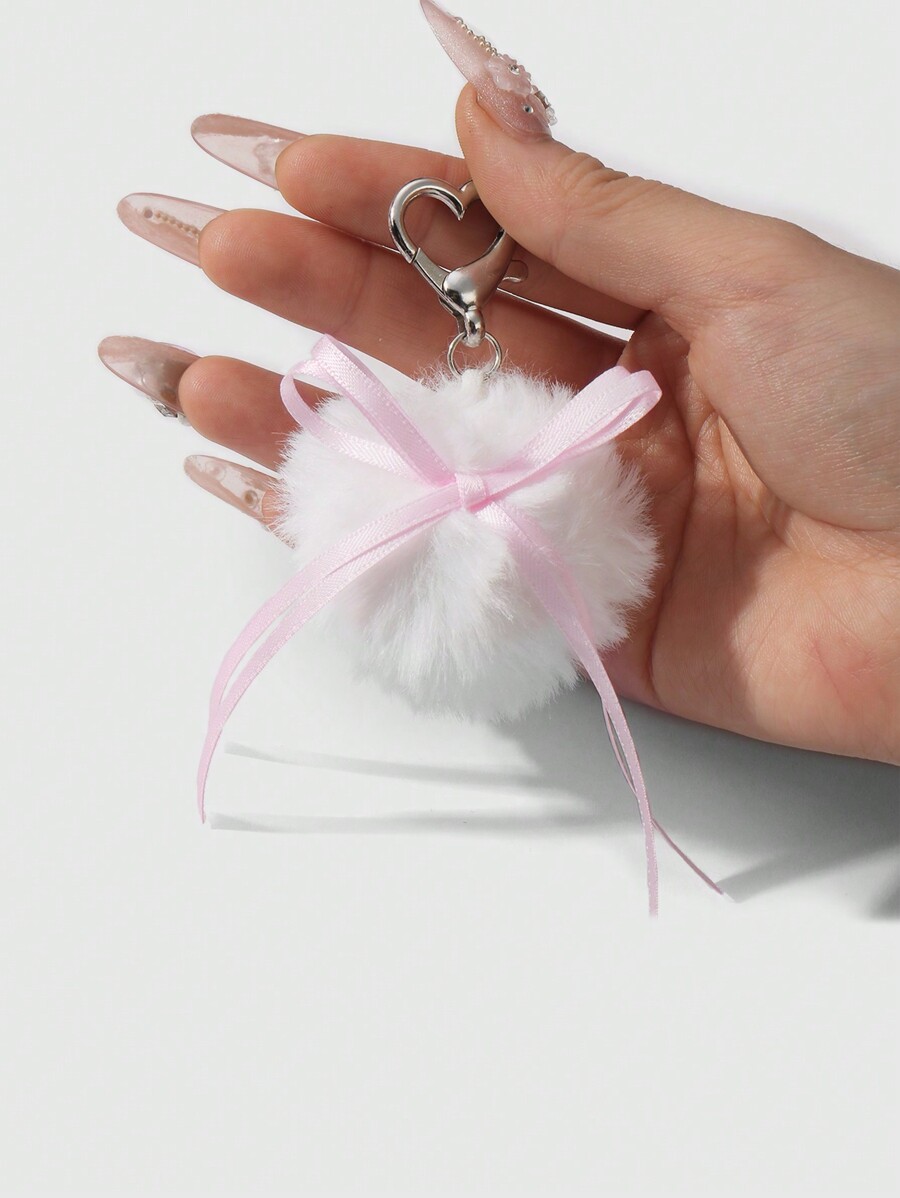 Kawaii 2pcs/Set Korean Style Cute Fluffy Pom Pom, Angel Wings, Glitter Star, Ribbon, Resin Rabbit Pendant Keychain, Bag Charm Combo Set, Suitable For Bestie, Couple, Daily Wear, Holiday Gift