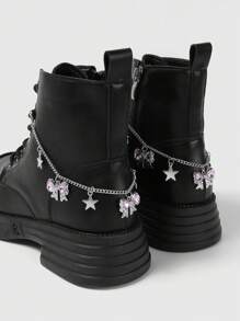 Kawaii 2pcs Stylish & Cute Silver Chain Pink Crystal Resin Heart, Bowknot , Star Pendant Accessories, Suitable For Women & Girls Daily Wear, Holiday Gift