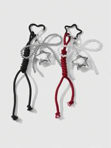 Kawaii 2pcs Y2K Stylish Sweet Gothic Black & Silver CCB Faux Pearl Bow Knot 3D Star Pendant Keychains, Suitable For Sisters, Couples, Best Friends Daily Wear Or Holiday Gift, Halloween