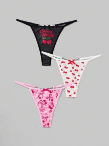 Kawaii 3pcs/Set Cherry Pattern Butterfly Metal Chain Thong Panty Set