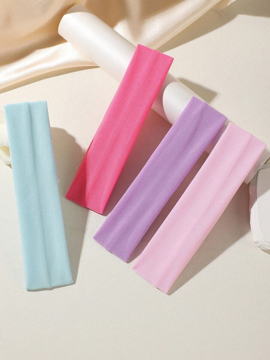 Kawaii 4Pcs Versatile Plain Color Simple Style Hair Bands For Girls, Suitable For Casual & Sports Daily Use