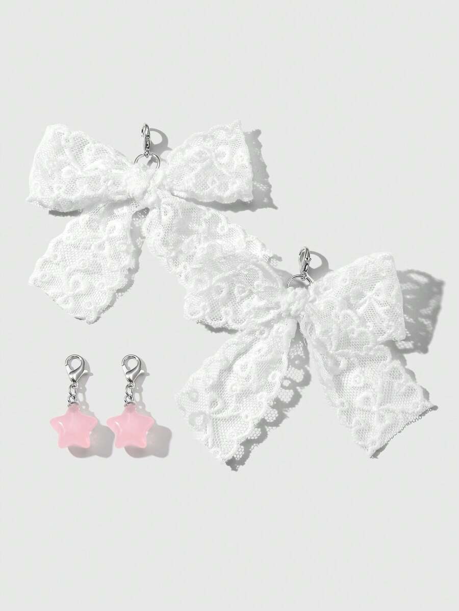 Kawaii 4pcs Fashionable & Delicate Resin Flower Bow Knot, Star Shaped Brooch & Lobster Clasp Decorative Apparel Accessories Set, Versatile Daily Wear For Women, Great Gift For Girls